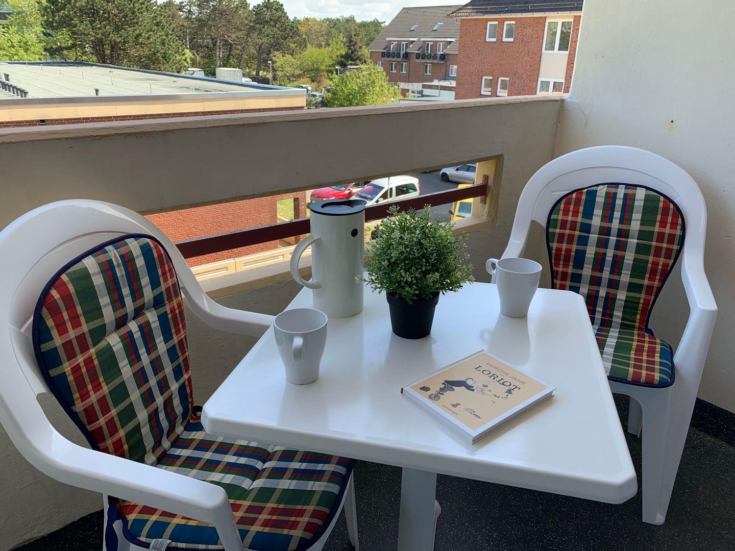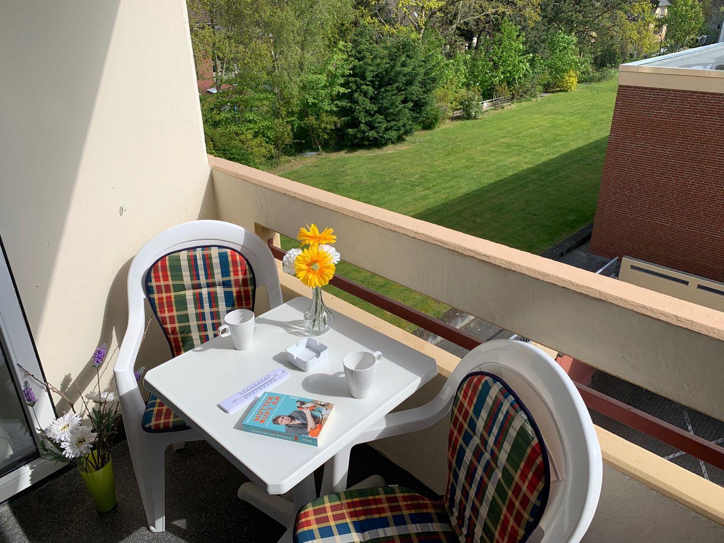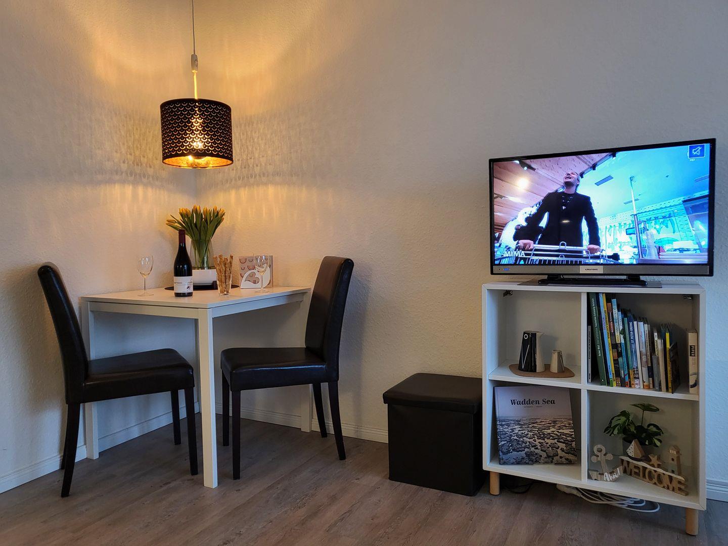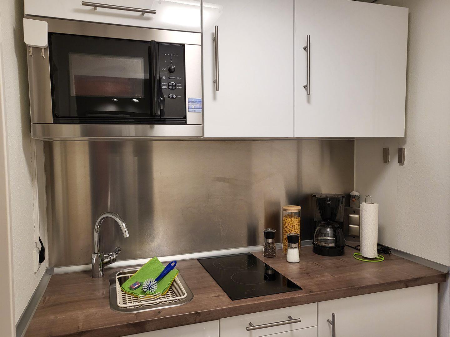 Zentral gelegene 1-Zimmer Ferienwohnung im 2. OG mit Balkon zur Landseite für 2 Personen. Ausgestattet mit Doppelbett, Kochnische, Flachbild-TV und Duschbad mit WC.