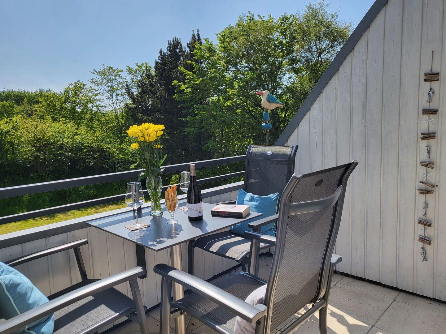 Die 44m² große 2-Zimmer Ferienwohnung liegt im Obergeschoss und bietet bis zu 3 Personen Platz für einen wunderbaren Urlaub in St. Peter Ording. Die Ferienwohnung begeistert mit möbliertem Südbalkon, der sonnige Stunden verspricht. Durch Lage und Ausstattung ist die Ferienwohnung wunderbar geeignet für den Familienurlaub, Kinder sind hier herzlich willkommen. Auch Urlaub mit Hund in St. Peter Ording ist hier möglich. Durch die große Fensterfront wirkt das harmonisch eingerichtete Wohnzimmer wunderbar hell und einladend. Zur Einrichtung gehört ein edles Ledersofa, dass sich zum Schlafsofa umfunktionieren lässt. Für die multimediale Unterhaltung sorgen Flachbild-TV und kostenfreies W-LAN. Die separat gelegene Küche ist sehr gut ausgestattet und verfügt unter anderem über E-Herd und Backofen sowie Geschirrspüler, Kaffeemaschine und Mikrowelle. Im separaten Schlafzimmer steht ein komfortables 180x200cm Doppelbett. Zur Ferienwohnung gehört ein Badezimmer mit Dusche und WC, eine Waschmaschine steht bereit.