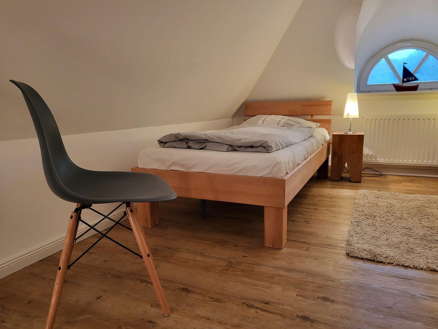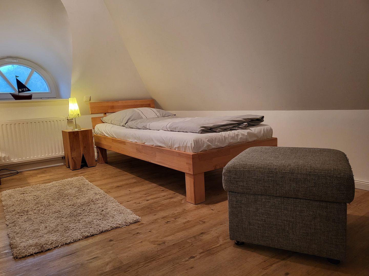 Im Dachgeschoss 2 Einzelbetten sowie Badezimmer mit Dusche, WC und Badewanne.
