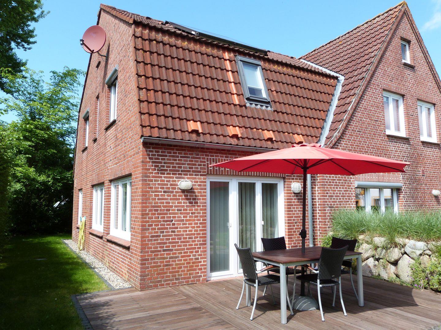 Zur Ferienwohnung gehört eine edle, komplett möblierte Holzterrasse. Eingefasst in typisch norddeutschen Friesenwall bietet die Terrasse im Sommer eine tolle Grundlage für erholsame Sonnenstunden.
