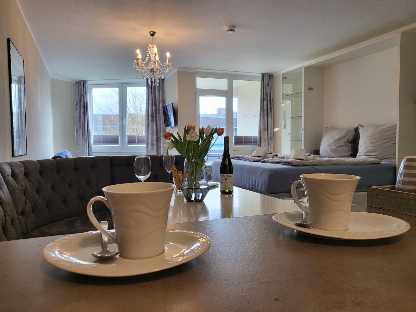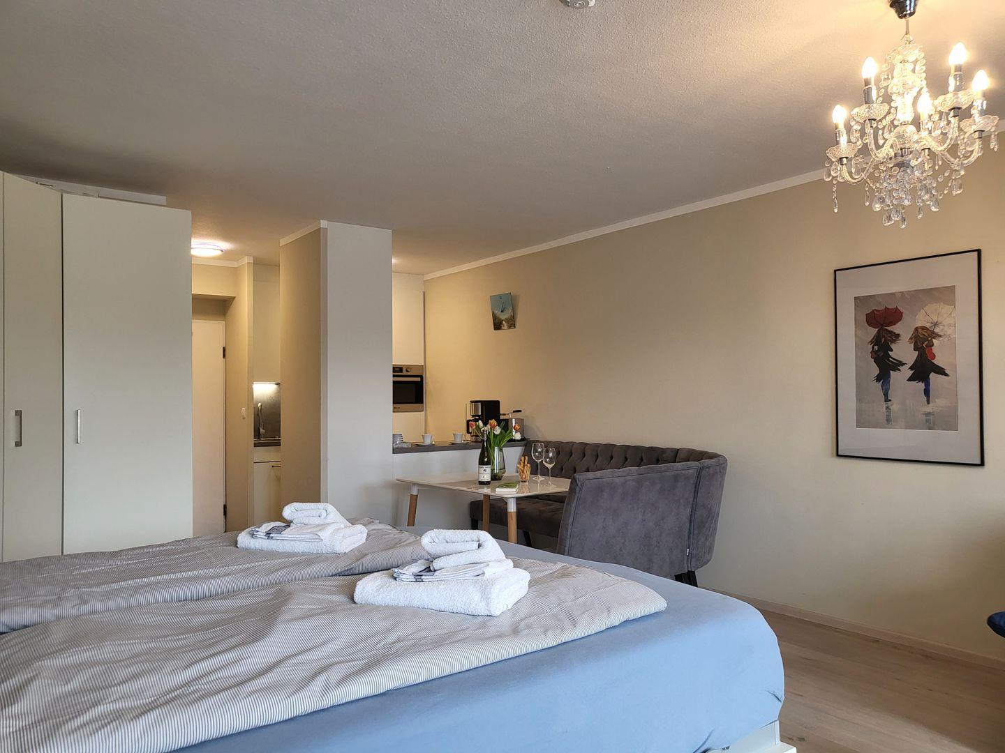 Sehr zentral und strandnah gelegenes 1 Zimmer-Apartment. für 2-4 Personen, kleiner Balkon, Wohnbereich mit