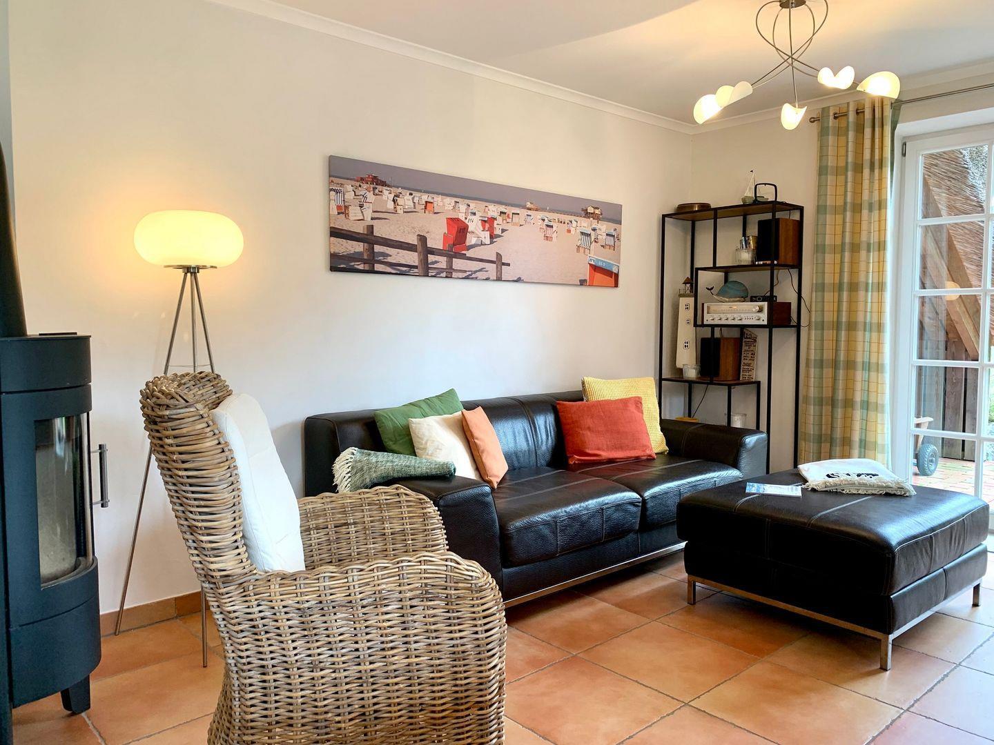 Ferienhaus DHH unter Reetdach für bis zu 5 Personen. 2 möblierte Terrassen und Garten.