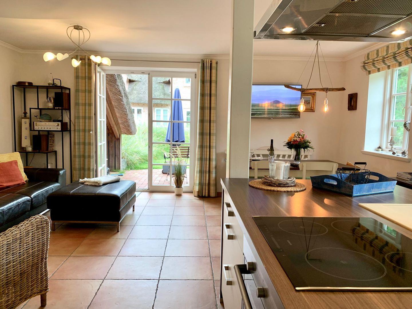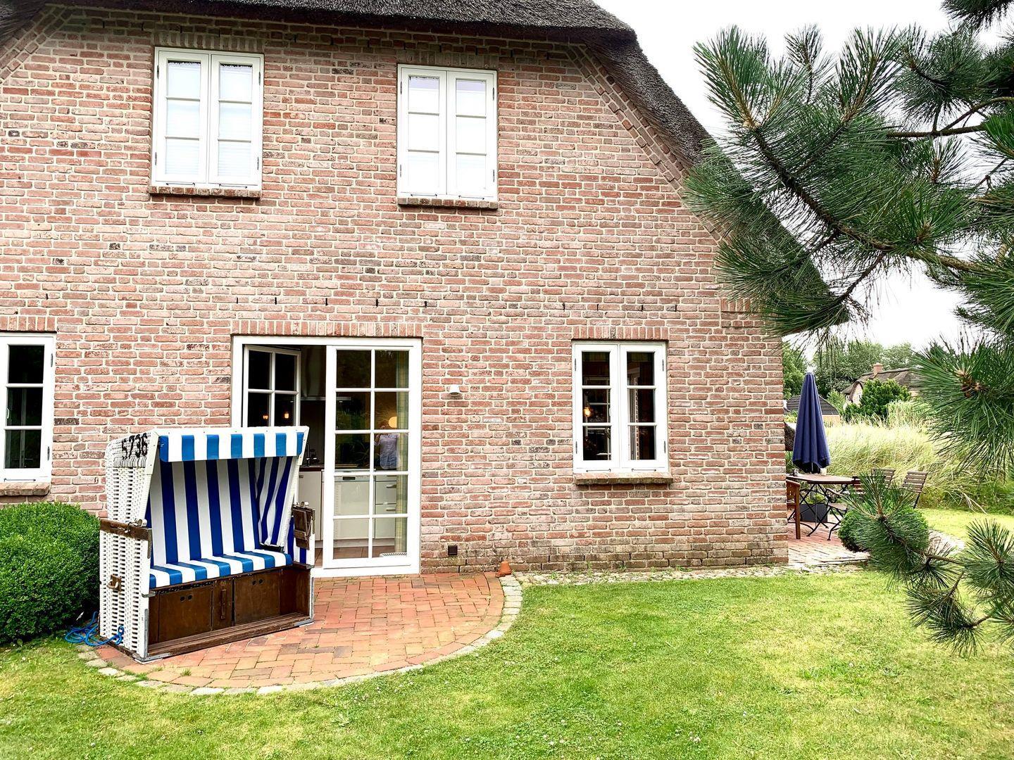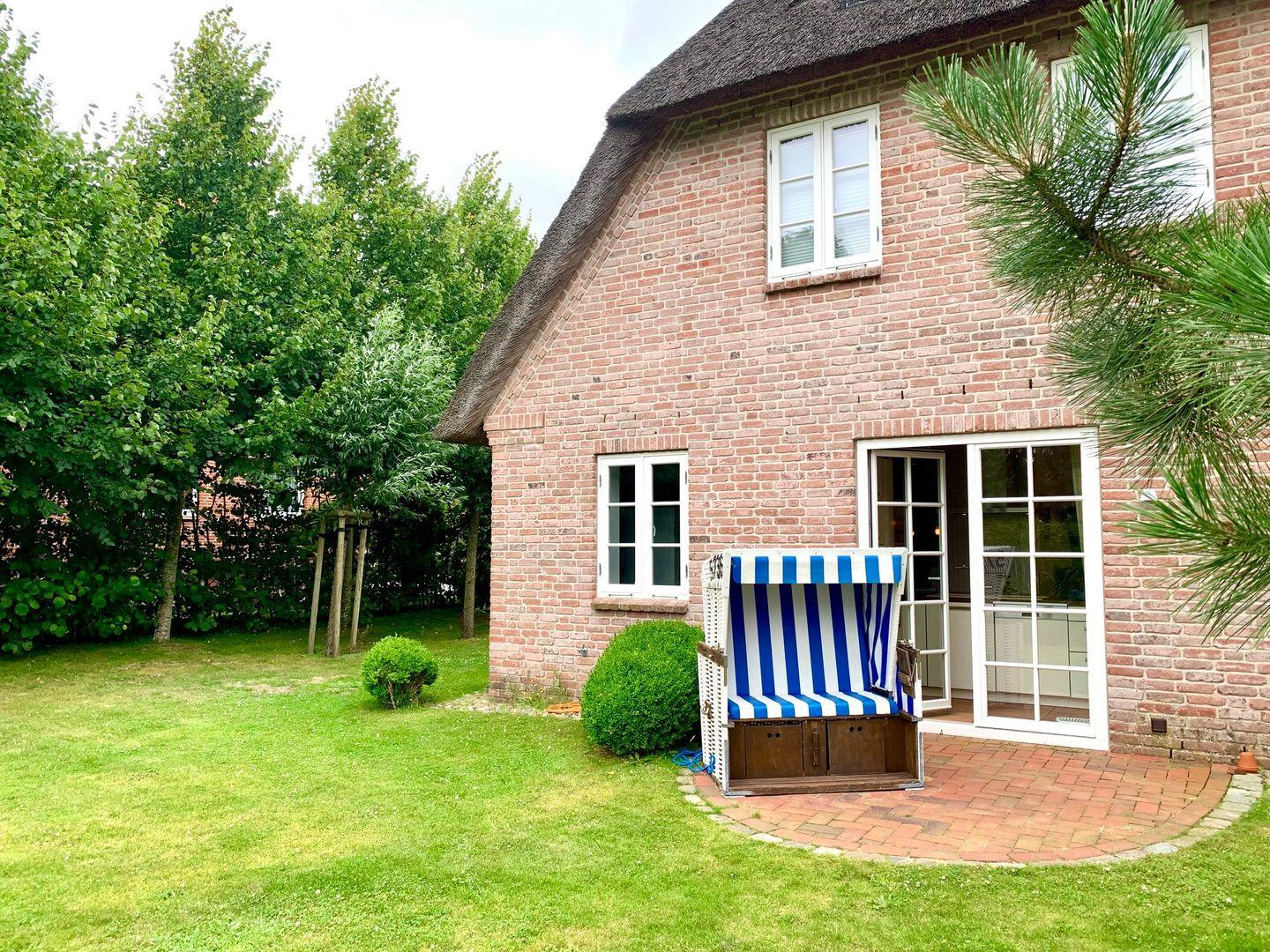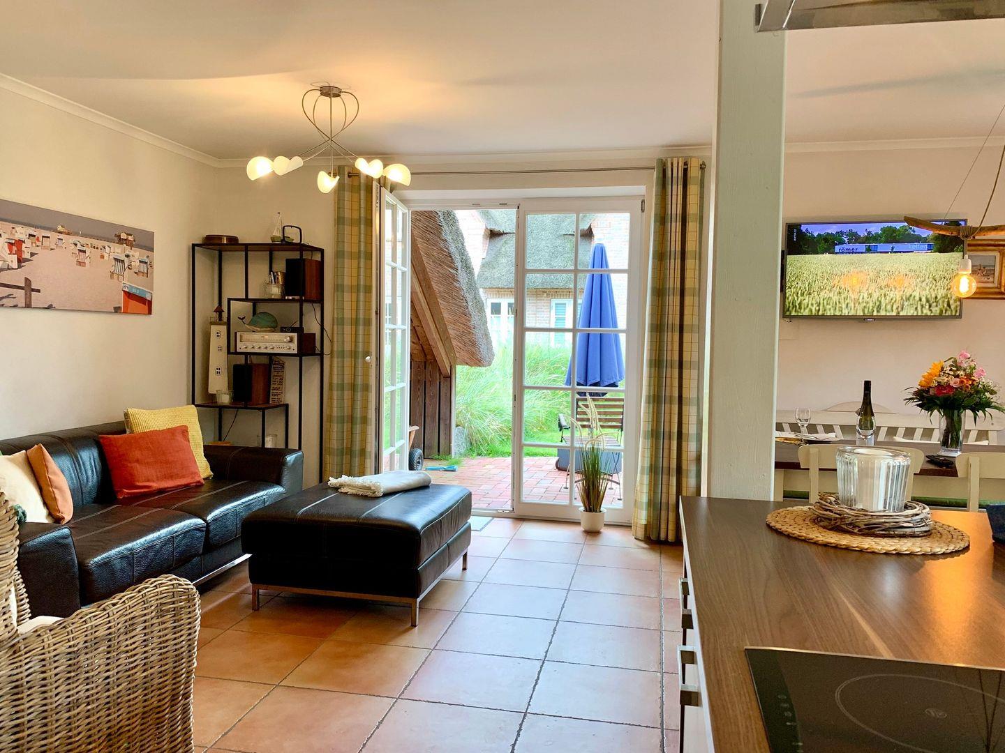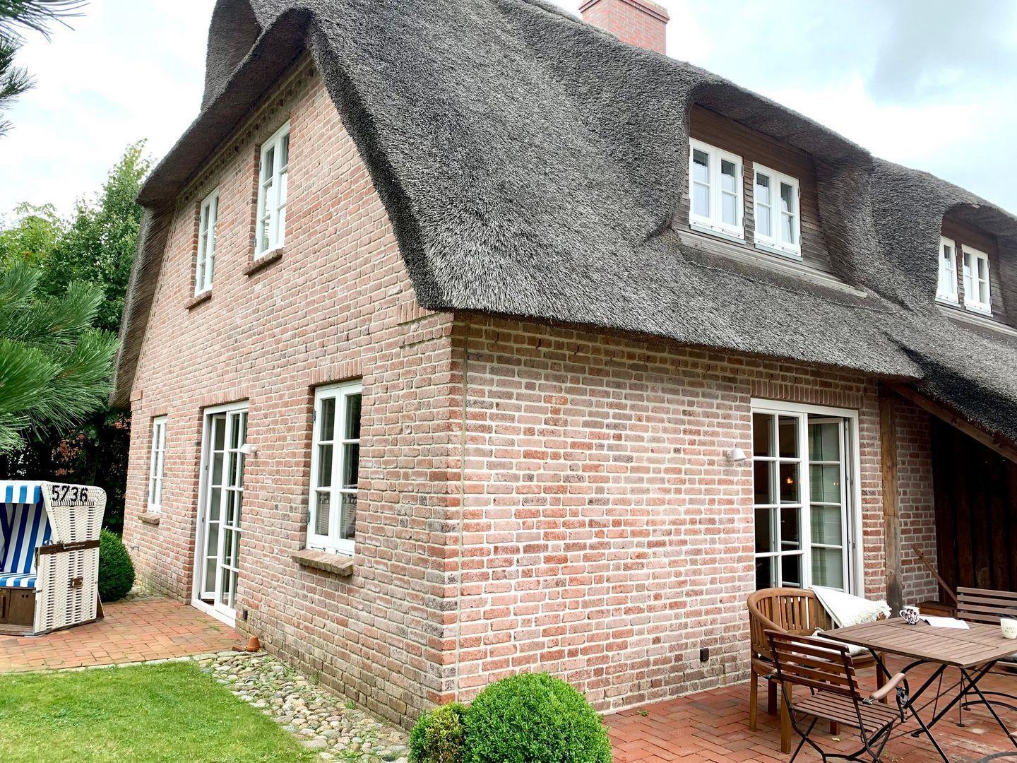Wunderbar blickgeschützt, mitten in der Dünenlandschaft des Orteils Böhl liegt das Ferienhaus Sandkorn unter typisch nordfriesischem Reetdach.