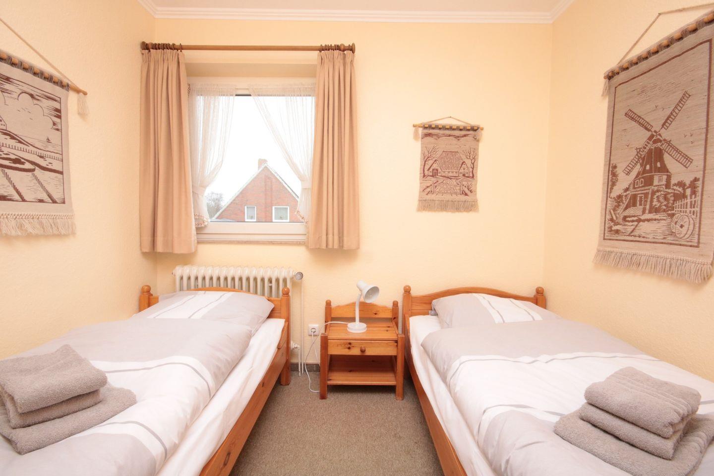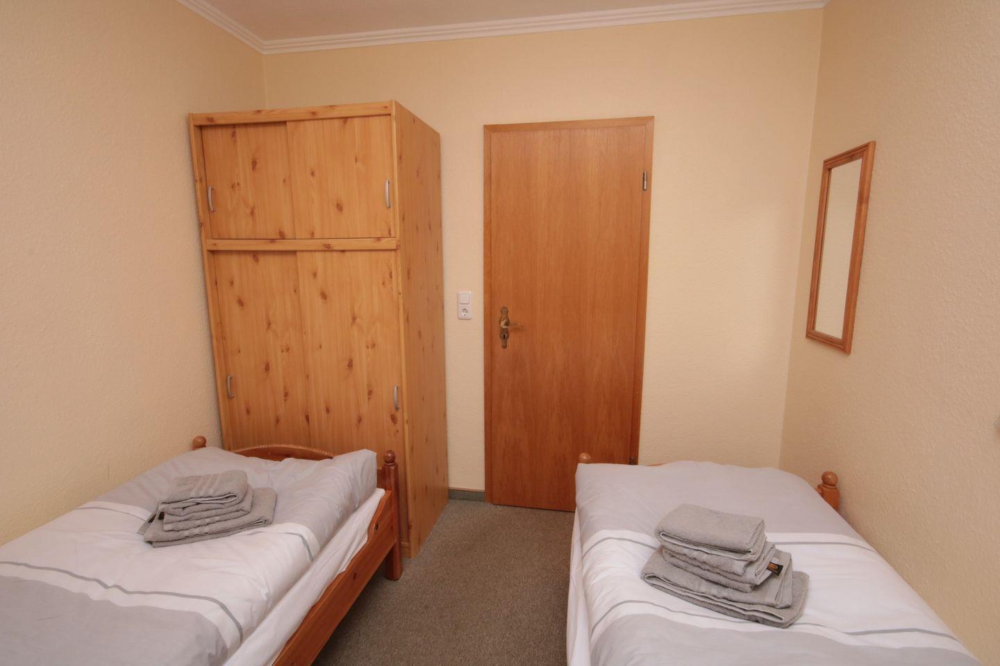 1 Schlafzimmer mit Doppelbett, 1 Schlafzimmer mit 2 Einzelbetten.
