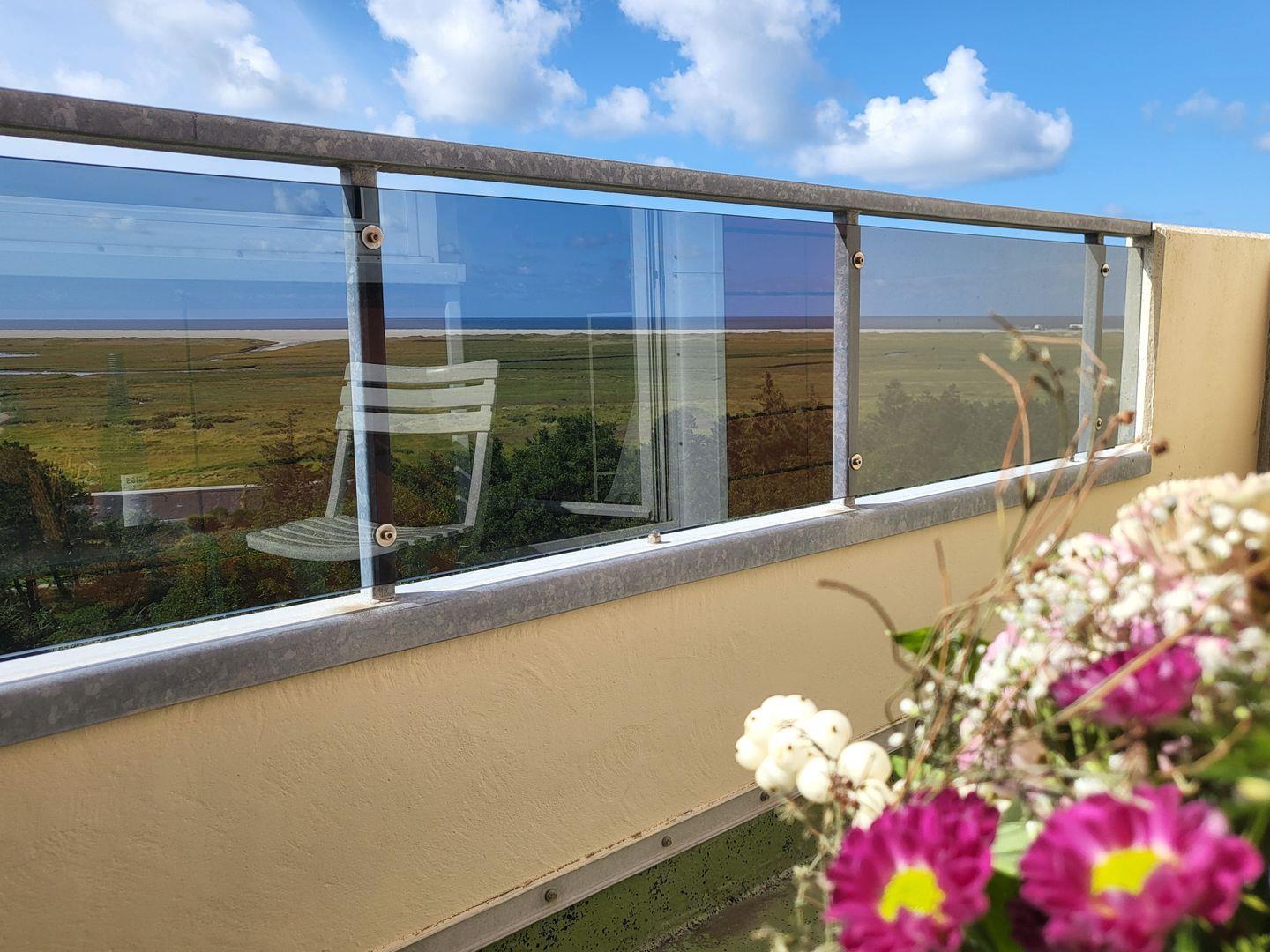 Der unvergleichliche Ausblick vom Balkon der 8. Etage vermittelt ein unbeschreibliches Freiheitsgefühl. Der Seeblick ist hier inklusive, bei guter Sicht reicht der Blick bis nach Büsum!