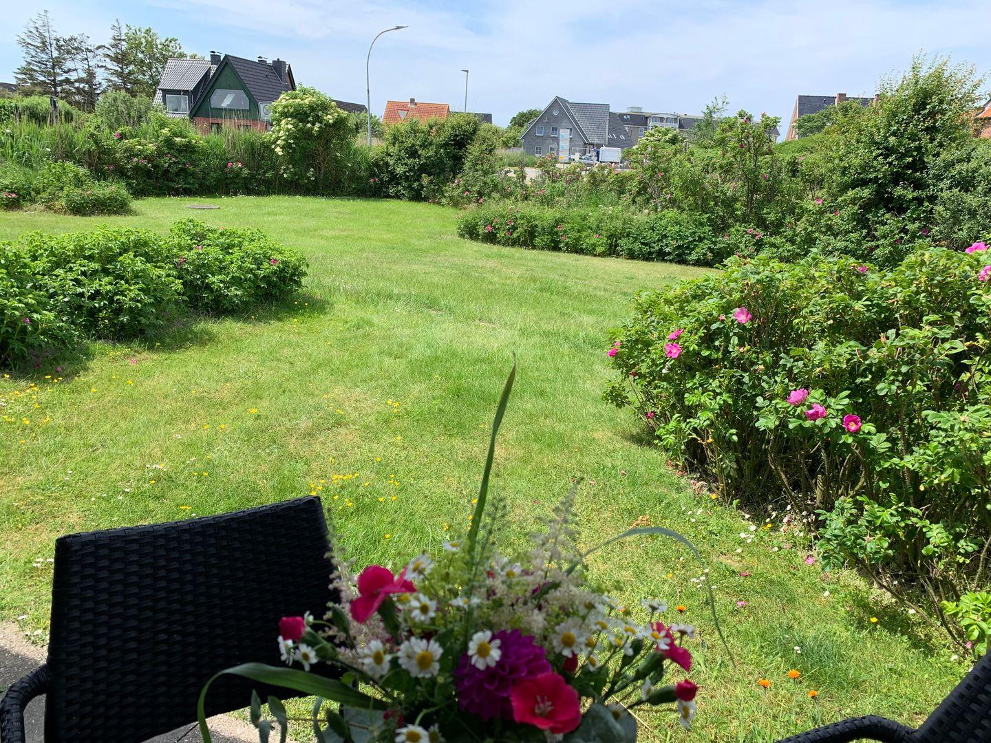 Zur Ferienwohnung gehört eine möblierte Terrasse und die Mitnutzung des Gartens, der sich wunderbar zum Sonnenbaden eignet.