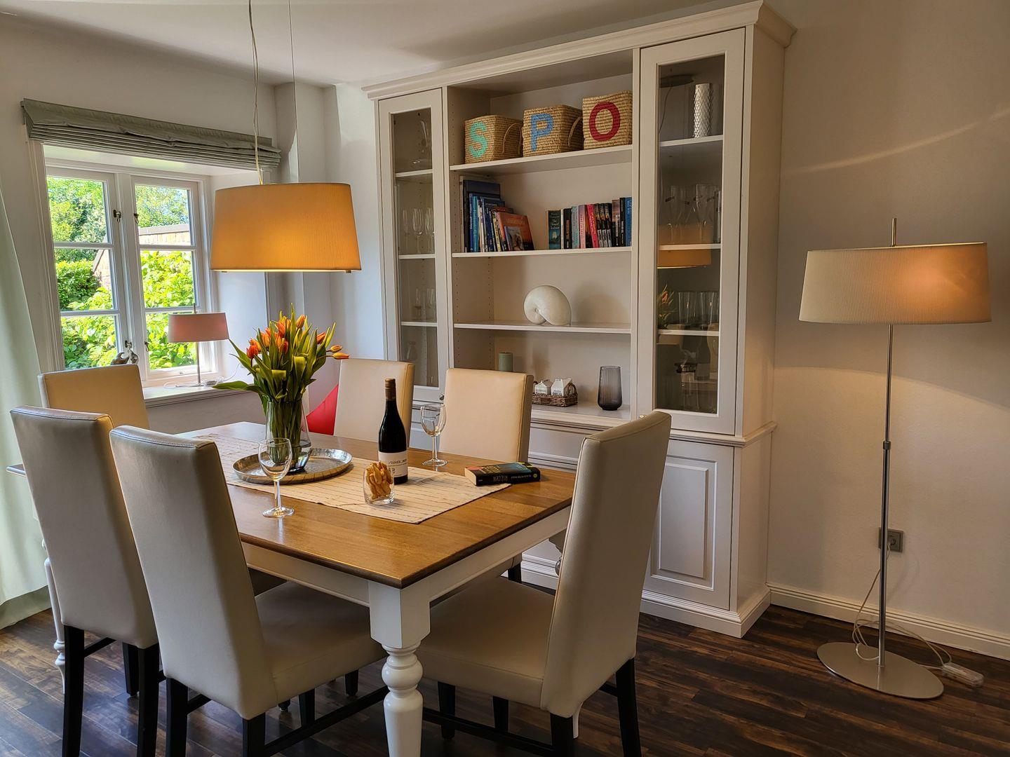 Am Esstisch findet die ganze Familie ausreichend Platz für gemeinsame Mahlzeiten, Brettspiele und Beisammensein.