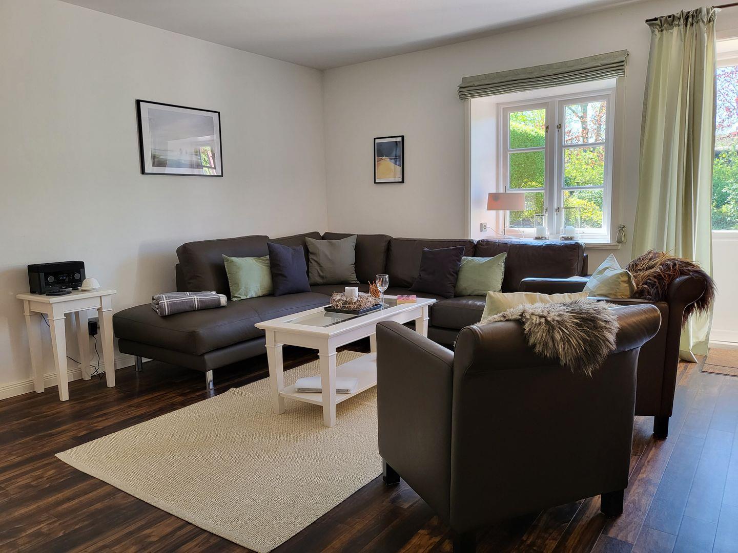 Zur Ausstattung gehört hier eine sehr komfortable Sitzgarnitur, bestehend aus Sofa und zwei Sesseln.