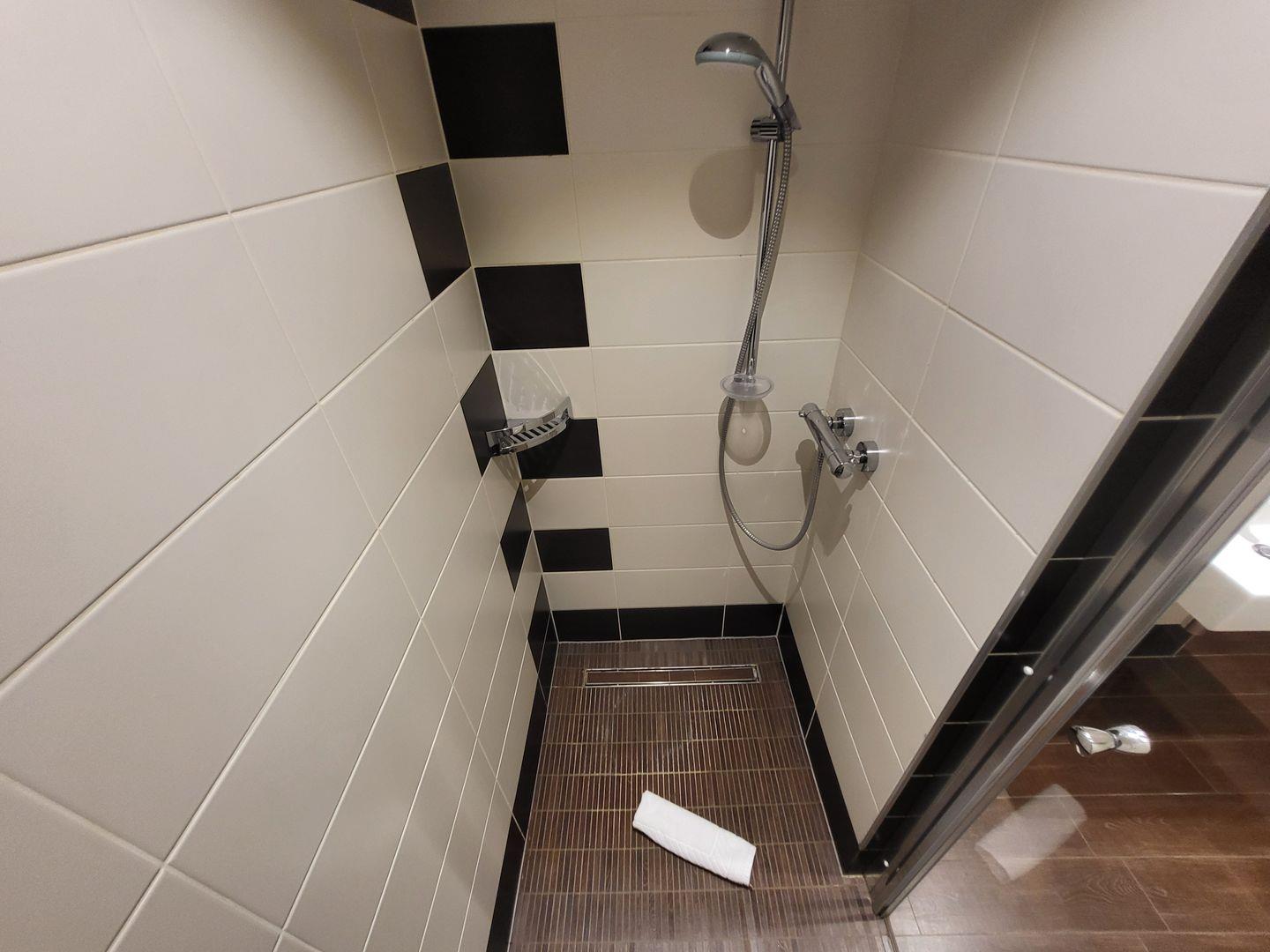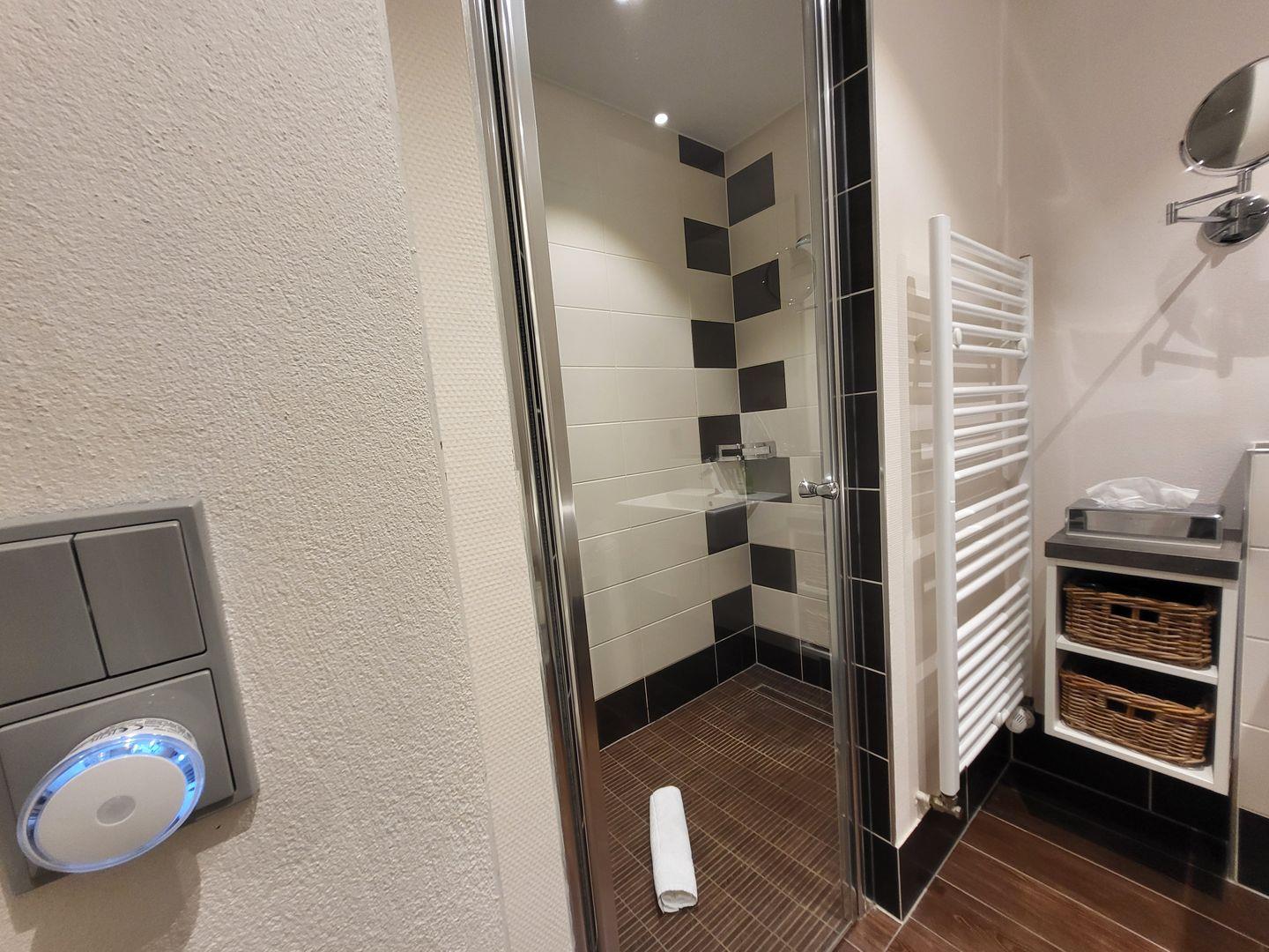 Ein geräumiges Duschbad mit bodengleicher Dusche und WC ist ebenfalls vorhanden.