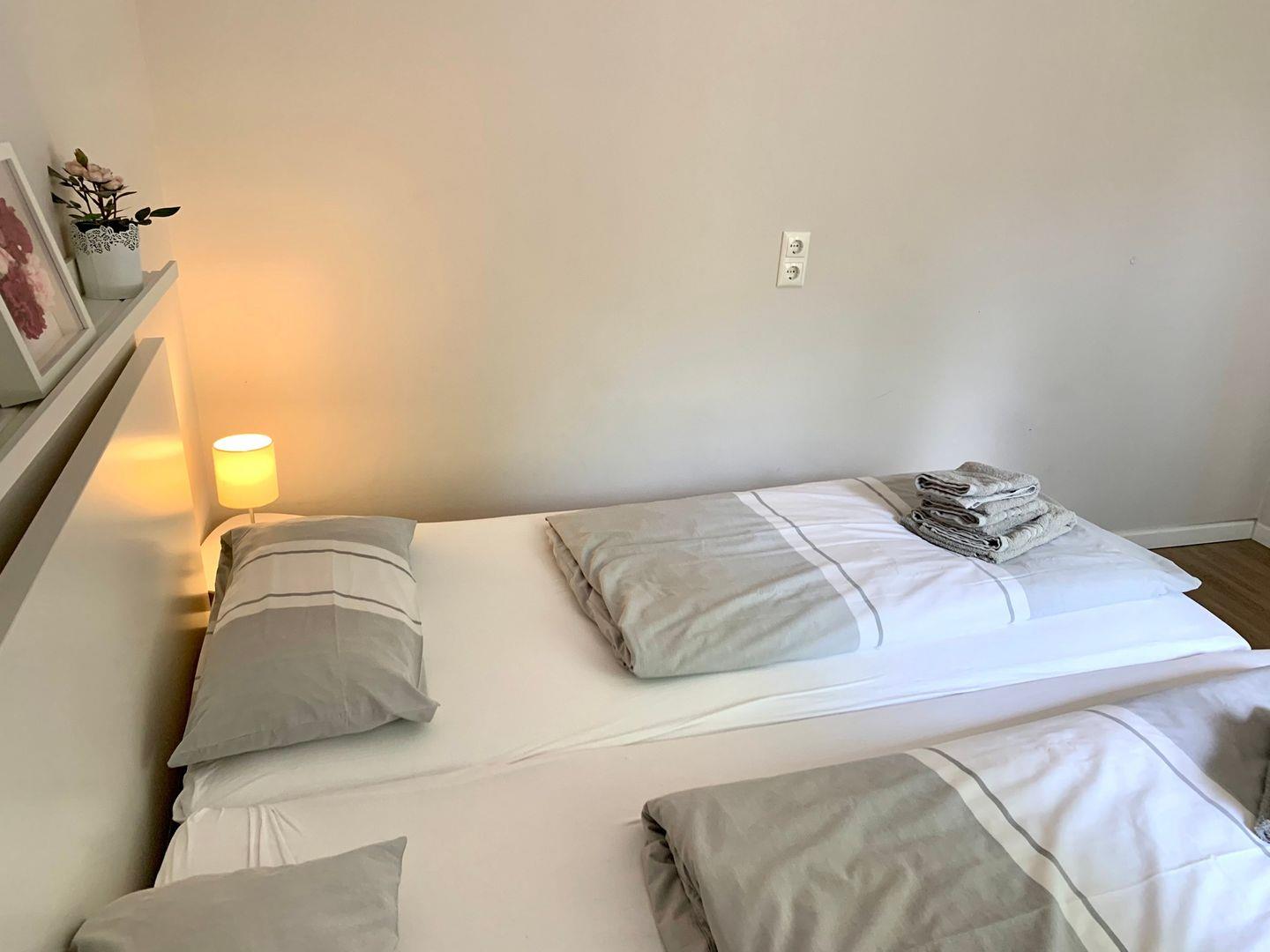 Das separate Schlafzimmer verfügt über ein großzügiges 160x200cm Doppelbett. Die Ferienwohnung ist ausgestattet mit Duschbad und WC.