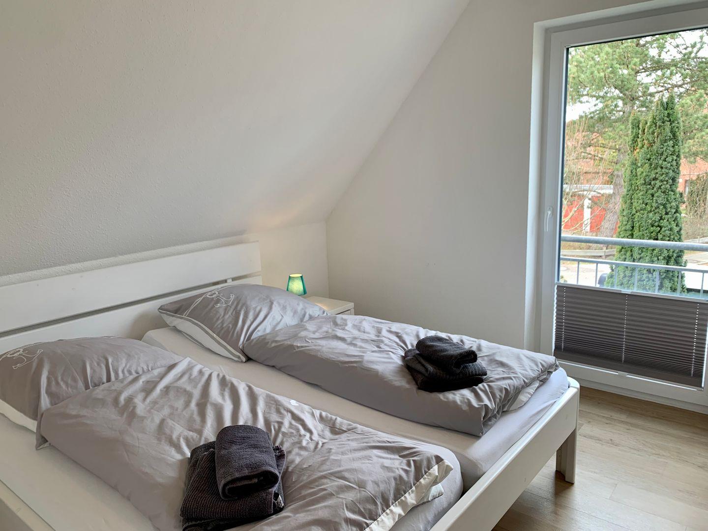 Ebenfalls im Erdgeschoss gelegen, befindet sich ein Schlafzimmer mit komfortablem 160x200cm Doppelbett.Ein kleines Duschbad mit Gäste-WC ist ebenfalls im EG vorhanden.