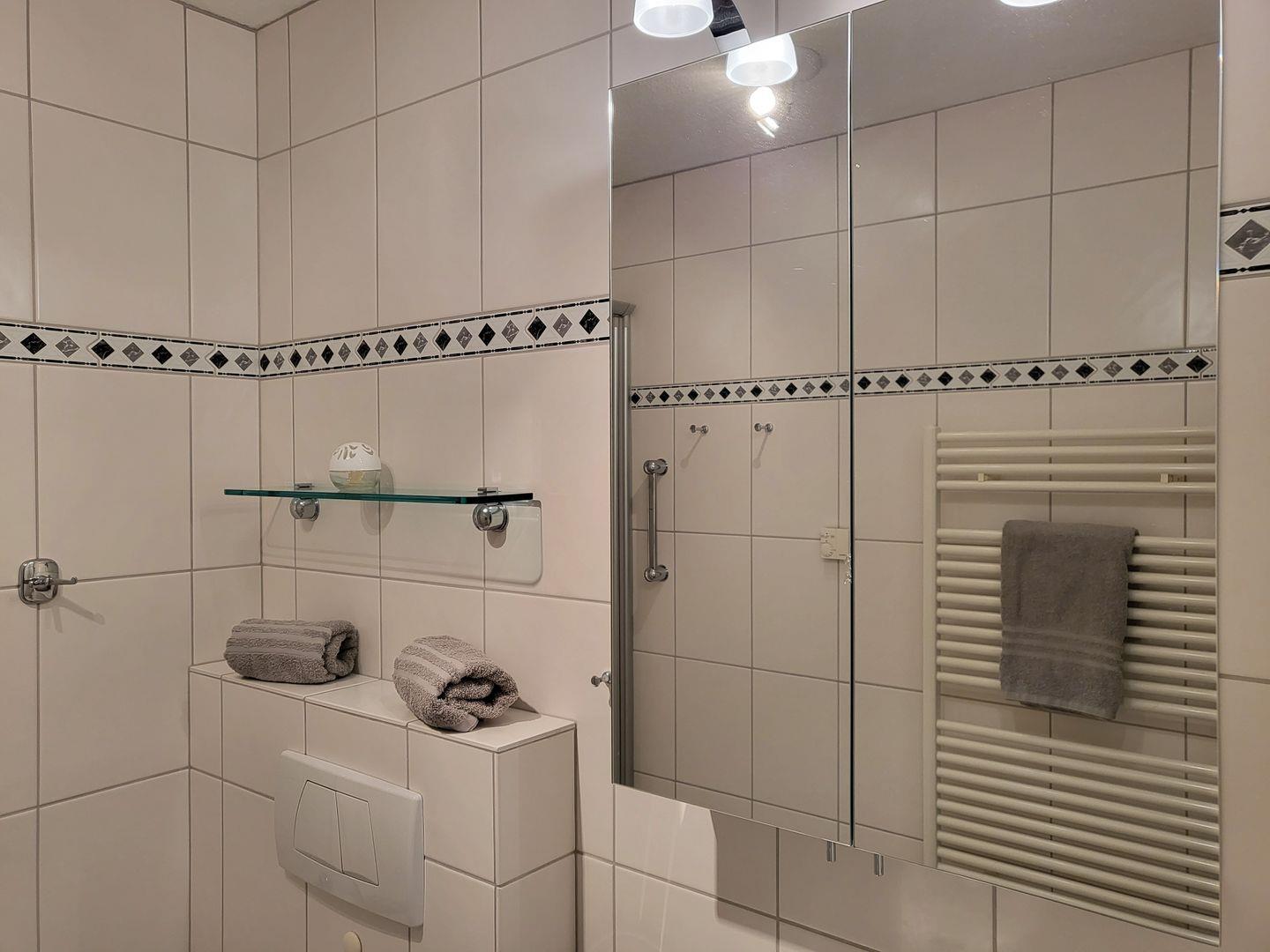Zur Ferienwohnung gehört ein Duschbad mit WC.