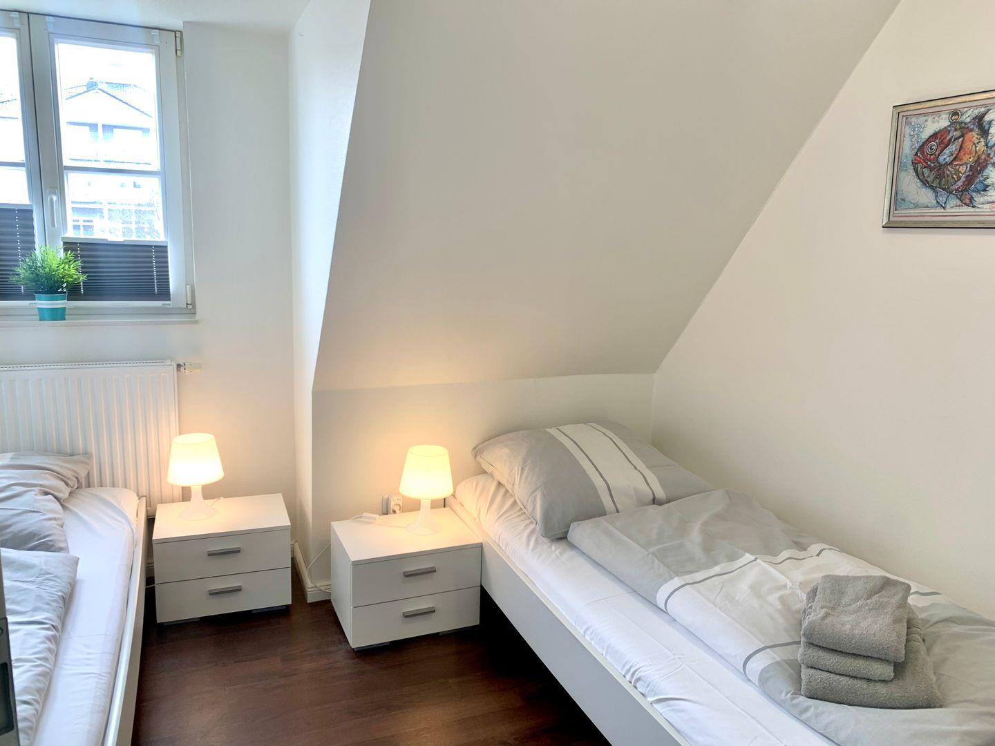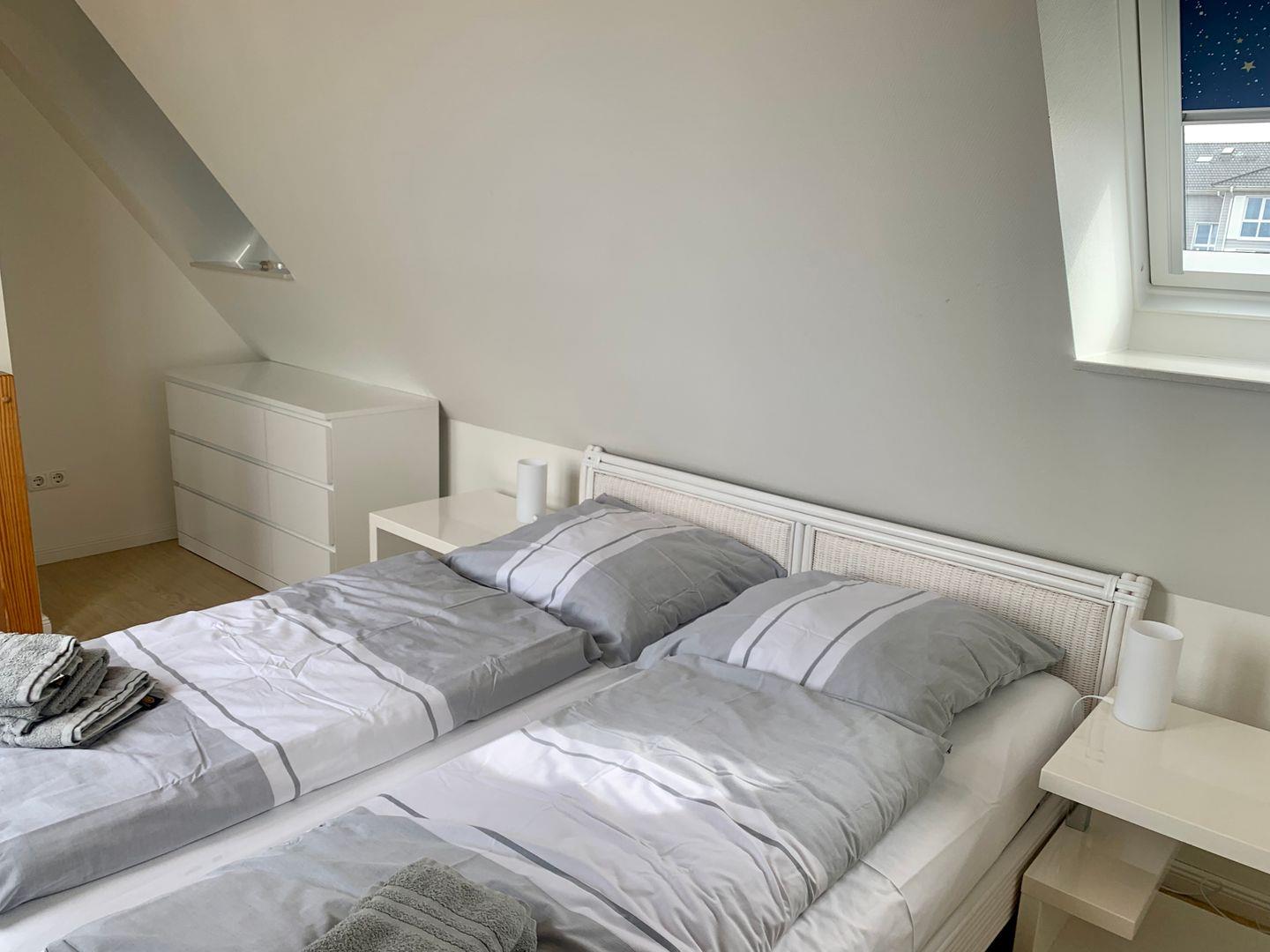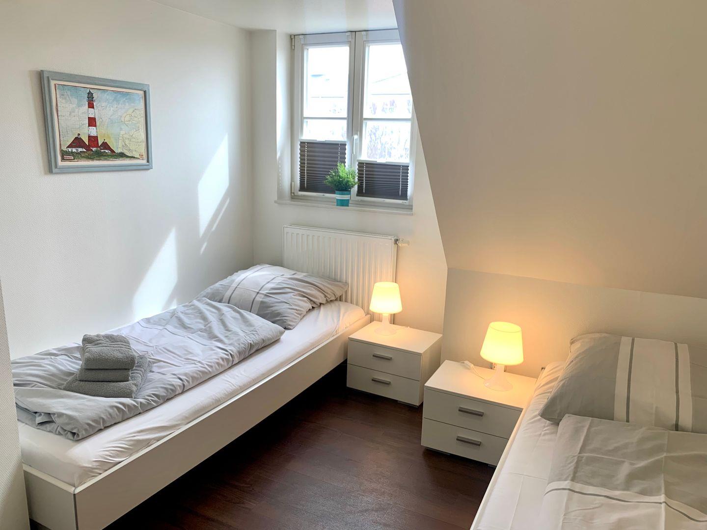Einzelbetten, ein weiteres mit einem Einzelbett, Duschbad mit WC, Dachgeschoss mit Doppelbett (neue hochwertige Matratzen),