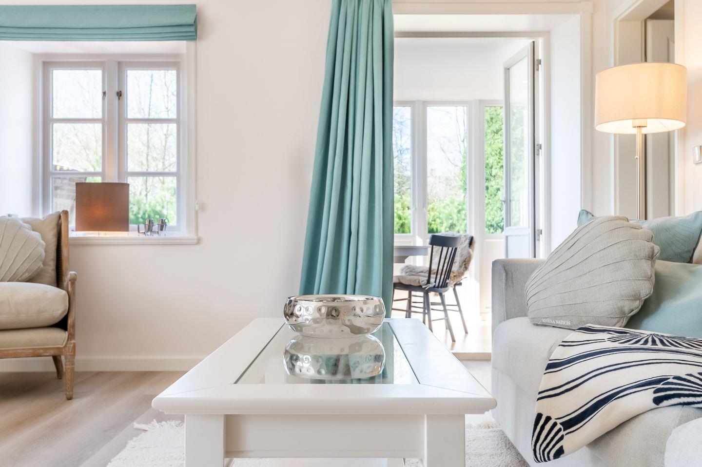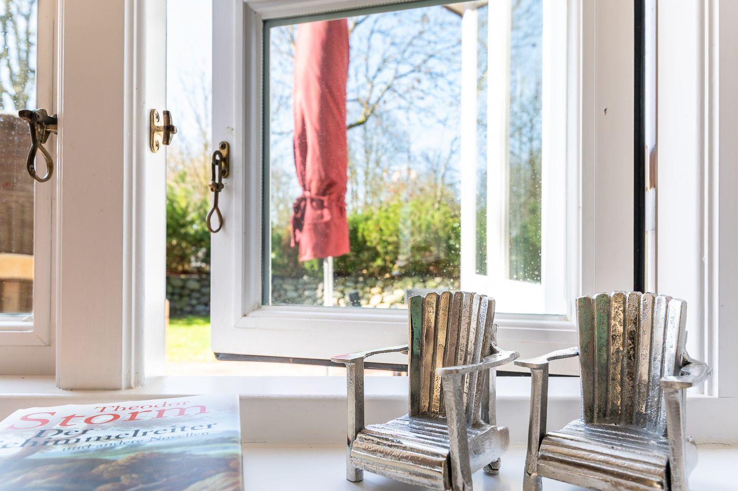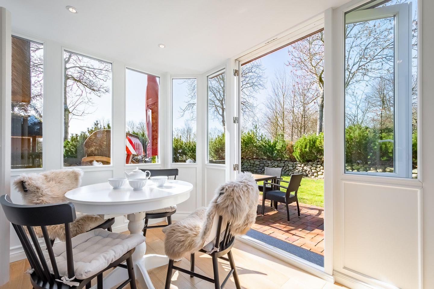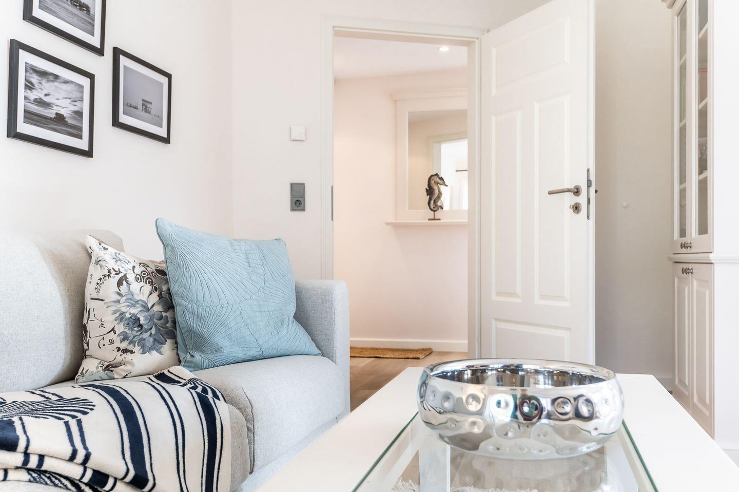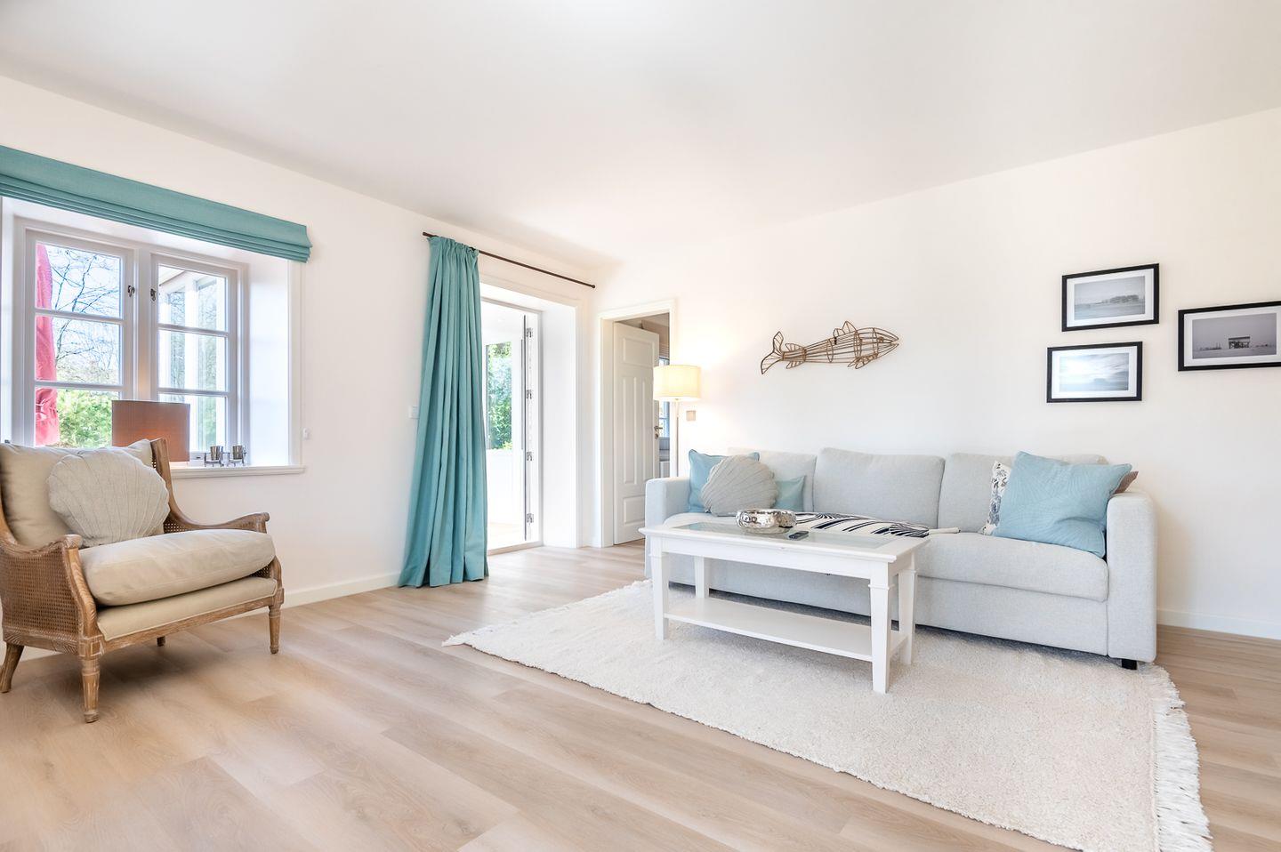 Hochwertige Ausstattung und Einrichtung. PKW-Stellplatz, W-LAN, Fahrradständer, ein Hund willkommen. Strandkorb vorhanden. Waschmaschine, Trockner und Bügelzubehör im Waschhaus vorhanden. Kinderhochstuhl und Kinderreisebett vorhanden. Insektenschutzgitter im Badezimmer, beiden Schlafzimmern, sowie der Küche/Wohnraum vorhanden