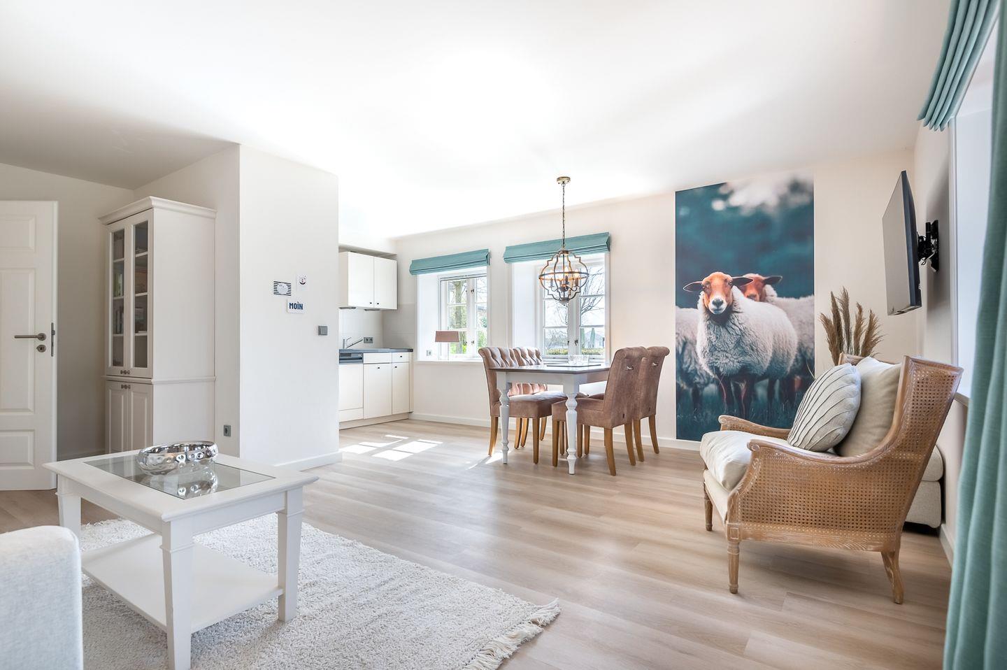 Die sehr moderne 3-Zimmer Ferienwohnung liegt im Erdgeschoss des Mühlenhofes und bietet auf 76m² Platz für bis zu 4 Personen.