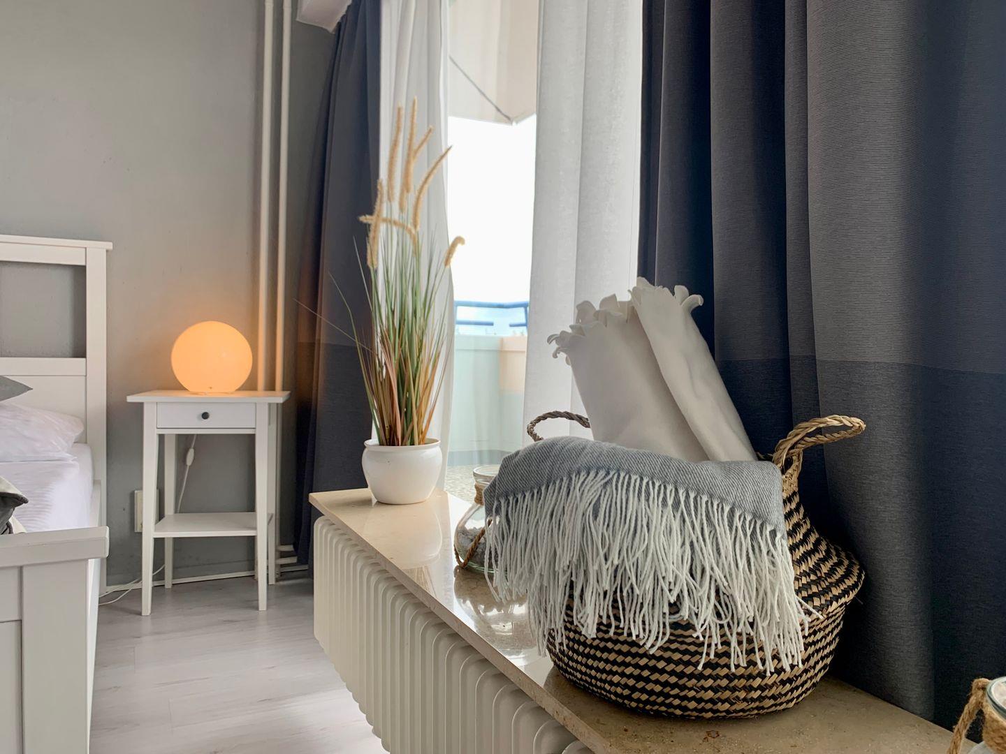 Sehr zentrale und strandnah gelegene 1-Zimmer Wohnung für 2 Personen in der 5. Etage. Möblierter Balkon mit Meerblick.