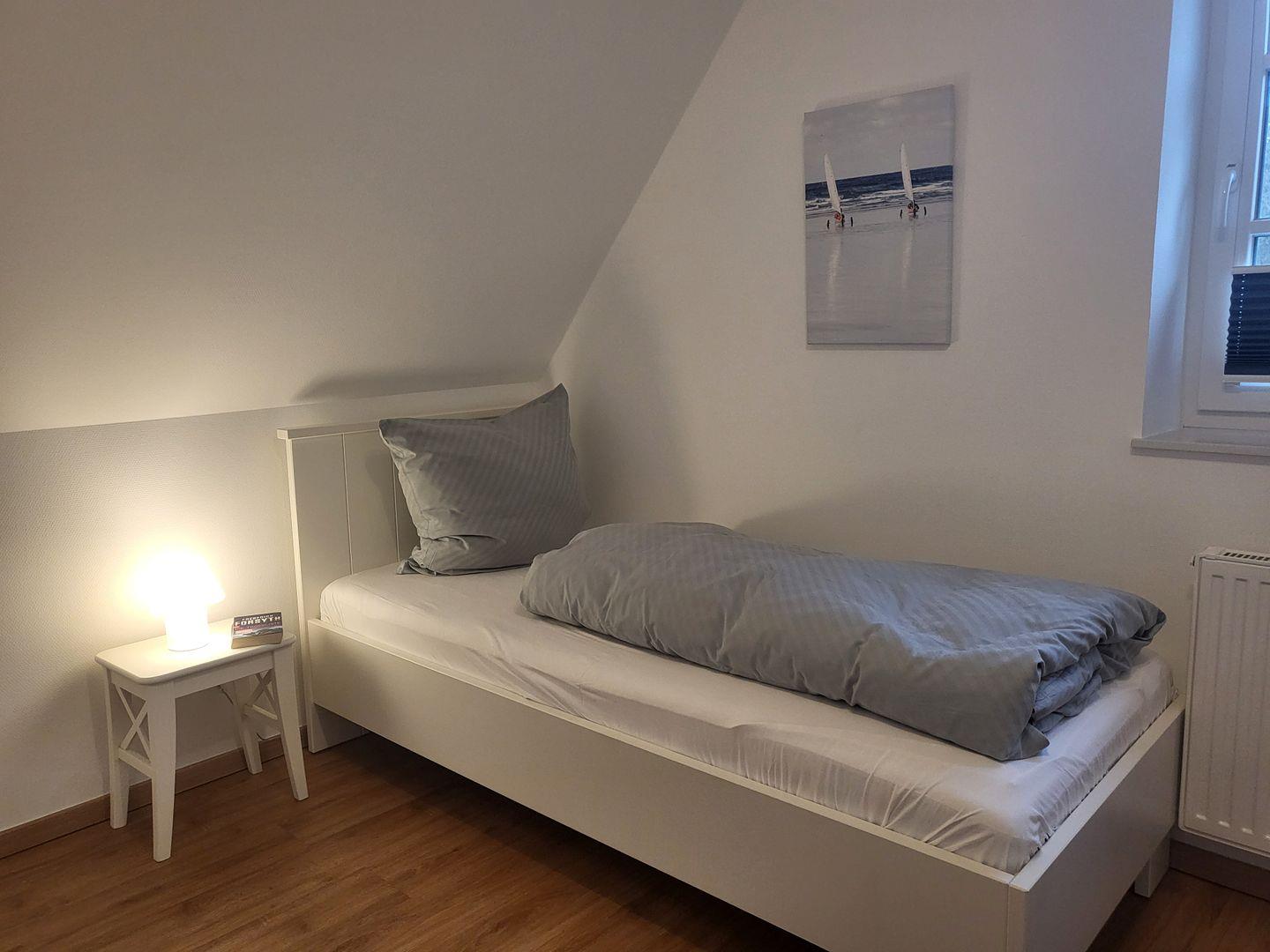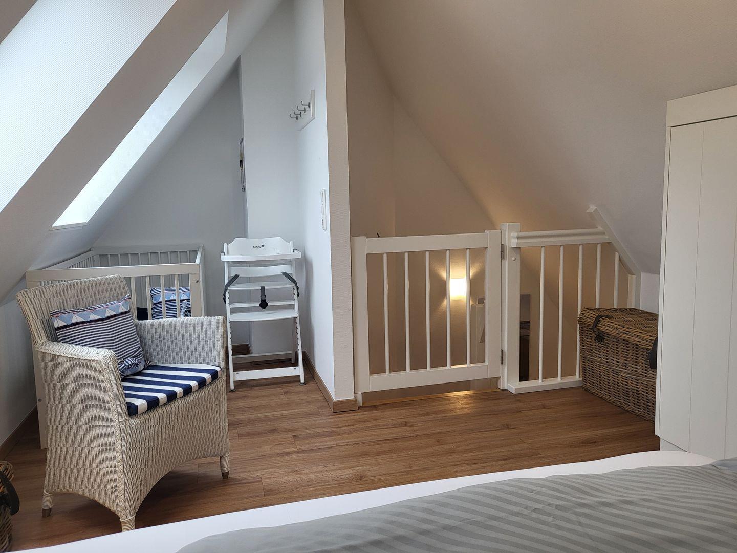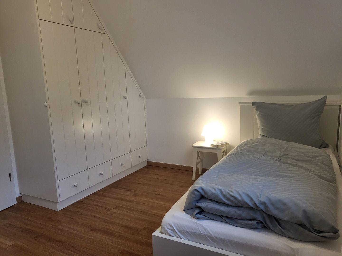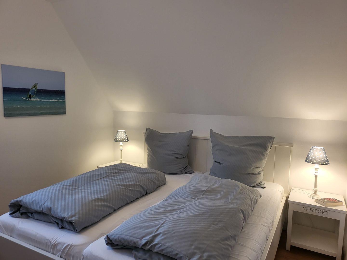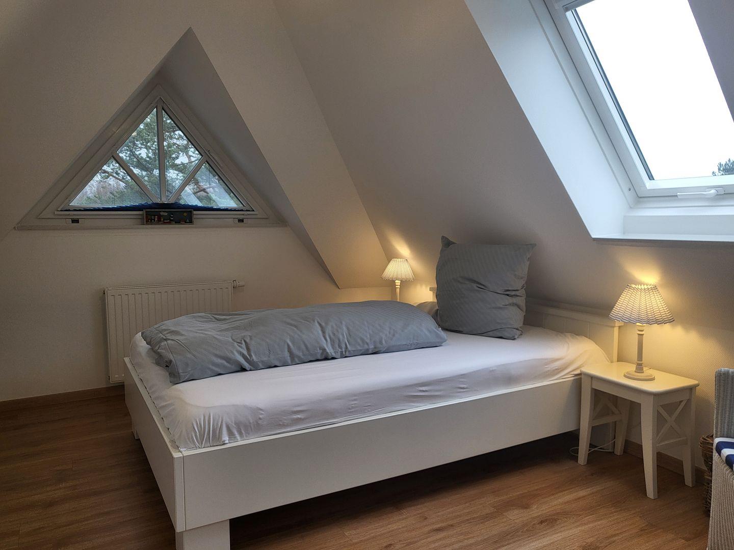 Das Dachgeschoss verfügt über ein weitere Schlafzimmer, dort ist ein 140x200cm Doppelbett vorhanden.
