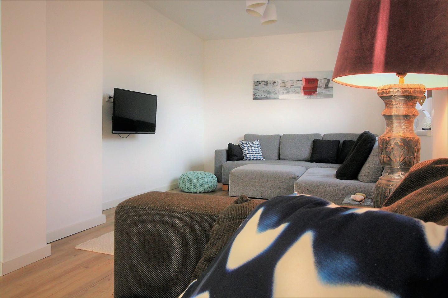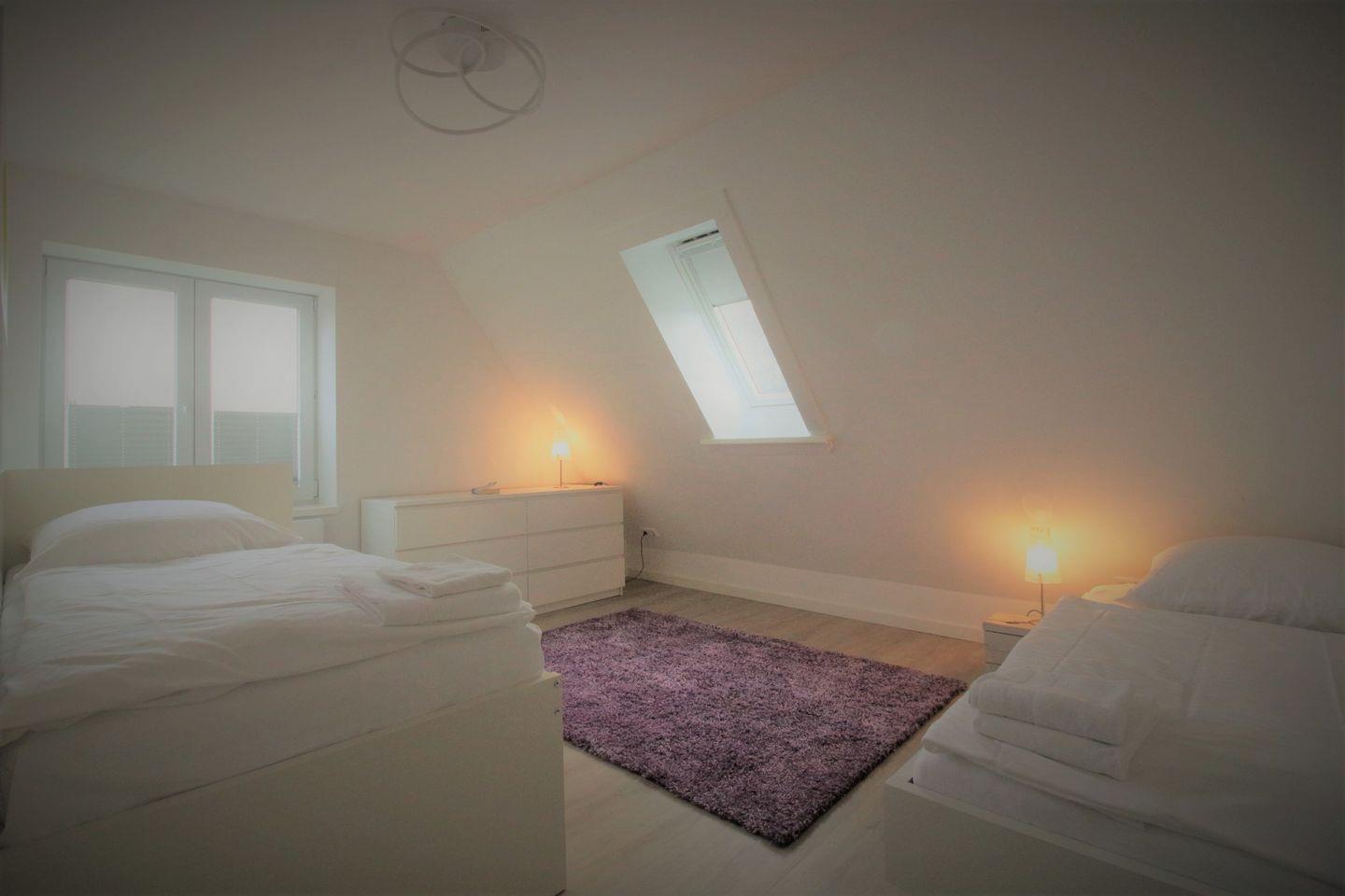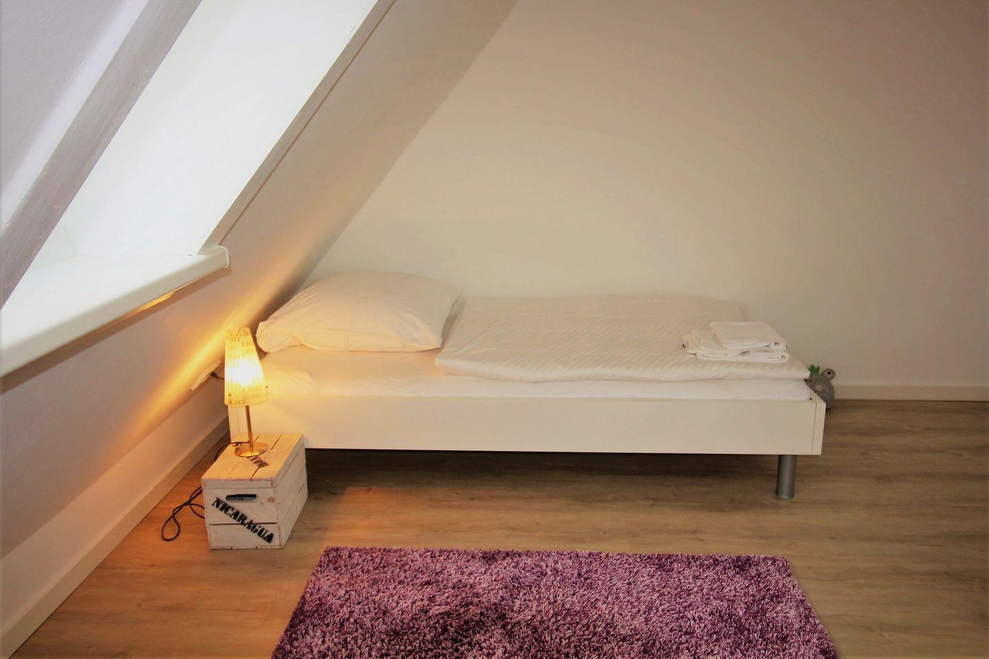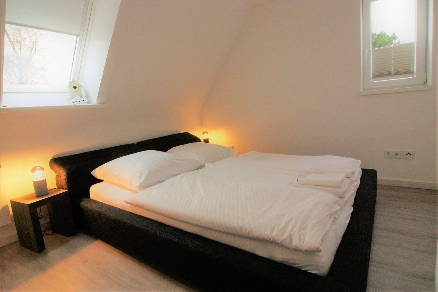 Im Dachgeschoß, die Treppe ist etwas steiler, ist ein weiteres Schlafzimmer mit 160x200cm Doppelbett und TV, sowie ein Aufenthaltsraum mit Sofa als Rückzugsort zum Lesen.