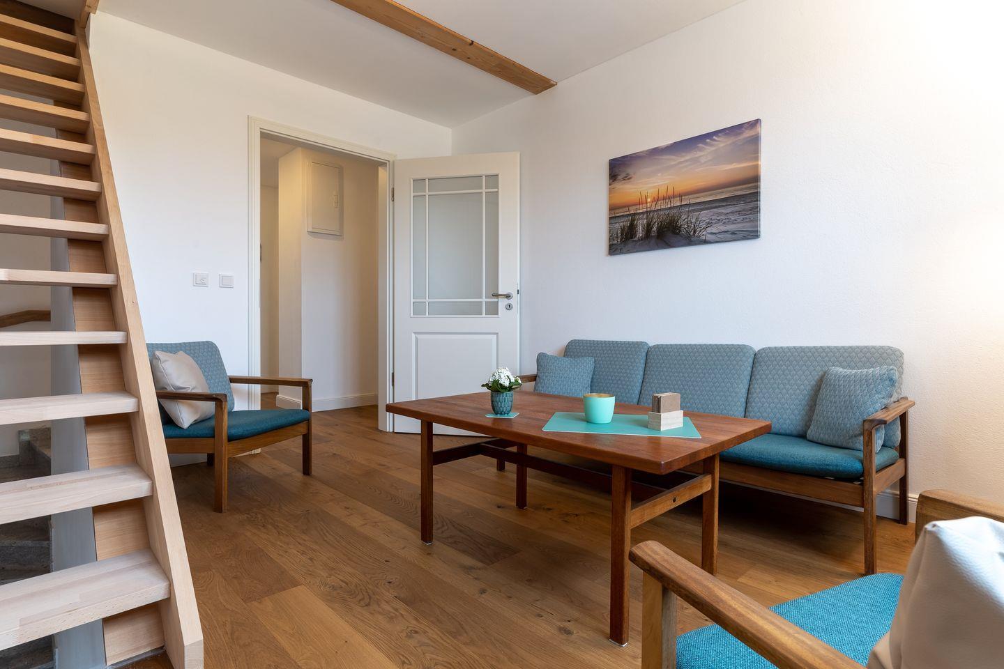 Im Obergeschoss befindet sich ausserdem ein zusätzlicher Wohnraum, dieser bietet einen gemütlichen Rückzugsort zum Lesen, Fernsehen, Ausruhen.