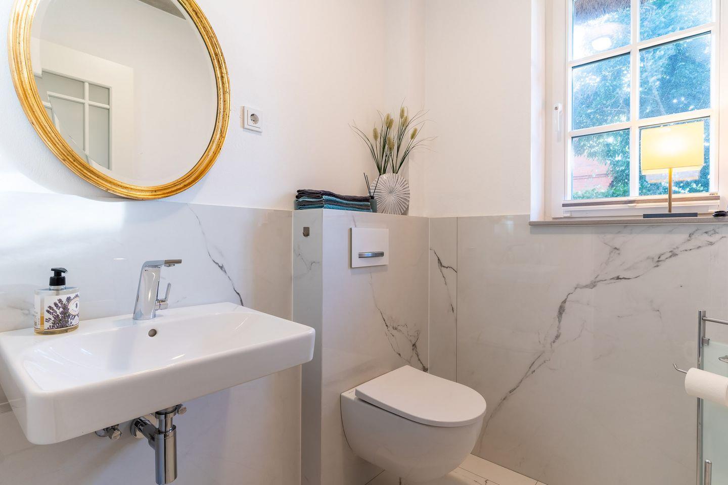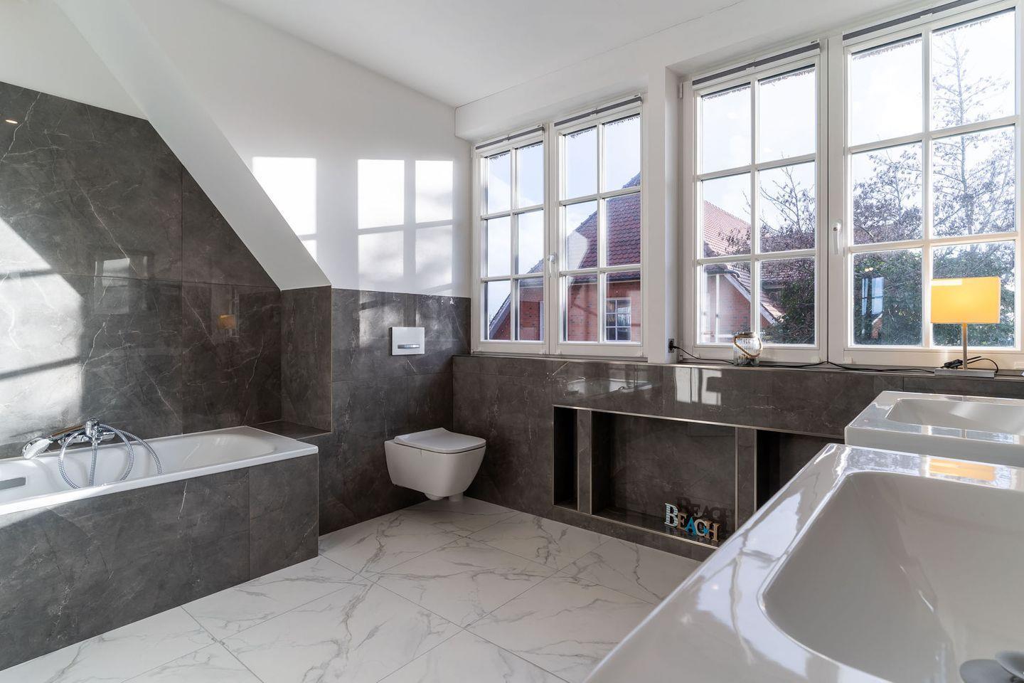 Darüber hinaus befindet sich im Obergeschoss ein geräumiges Bad mit einer Badewanne.