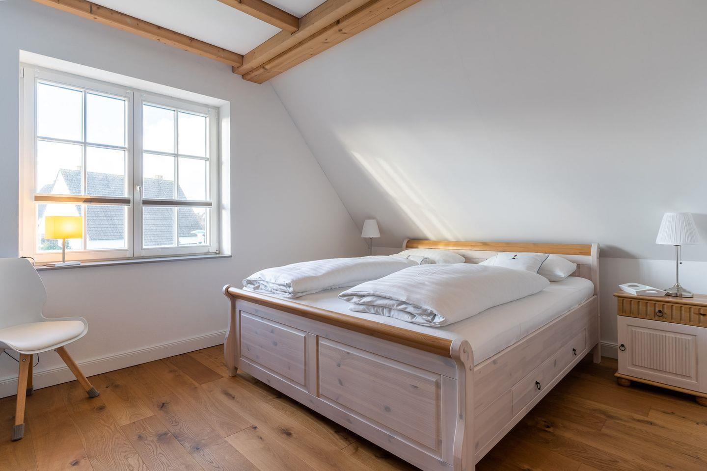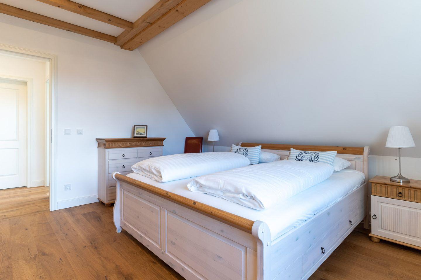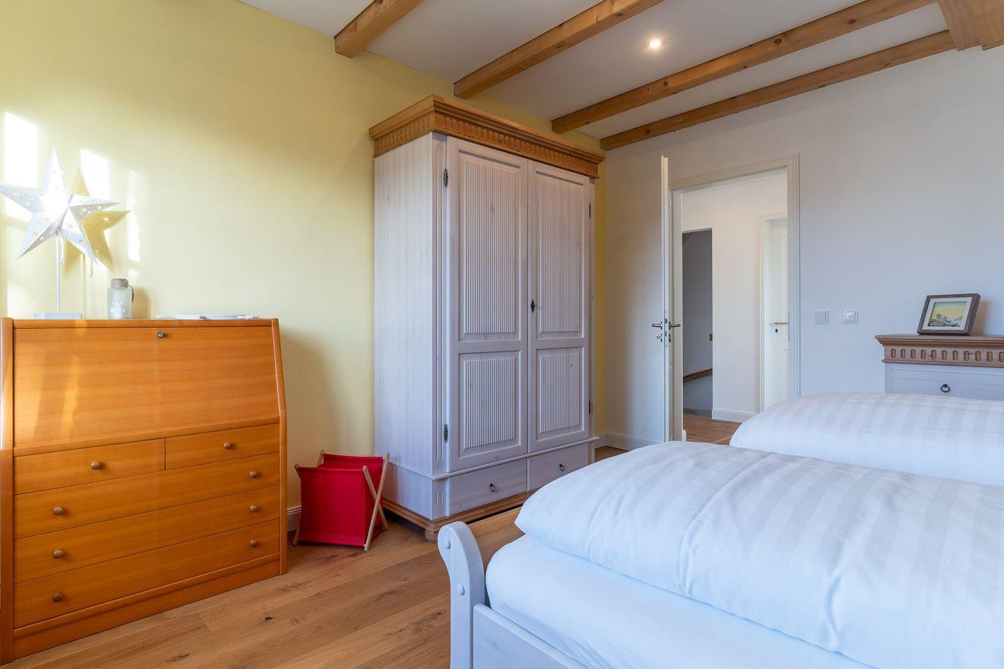 Über eine Granittreppe gelangt man in das Obergeschoss. Die beiden Schlafzimmer, jeweils mit einem Doppelbett bieten ruhevolle Erholung.