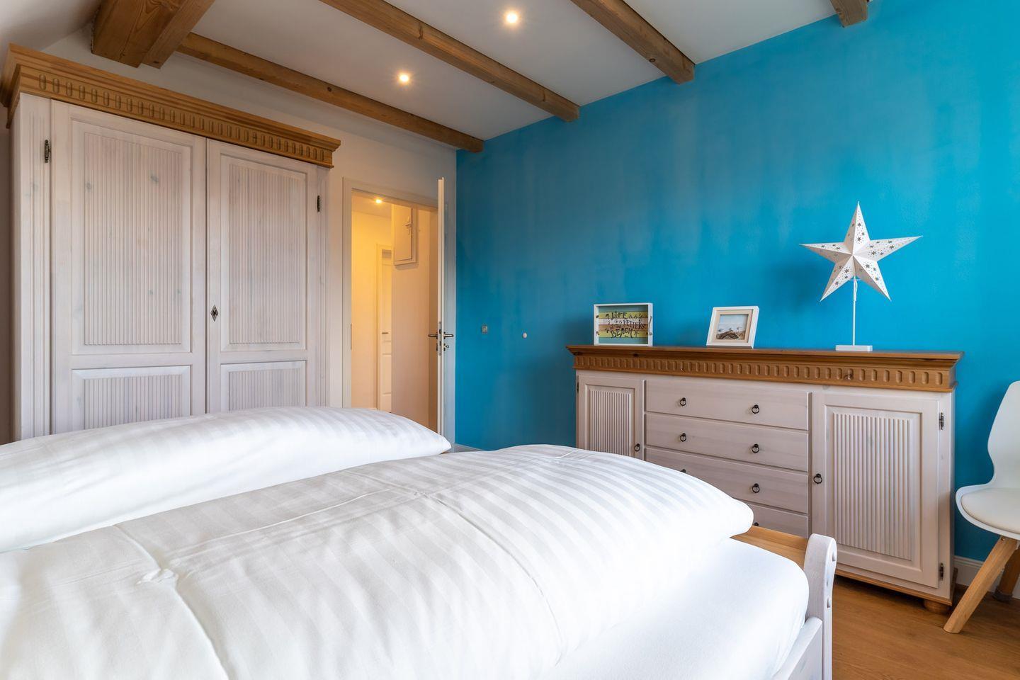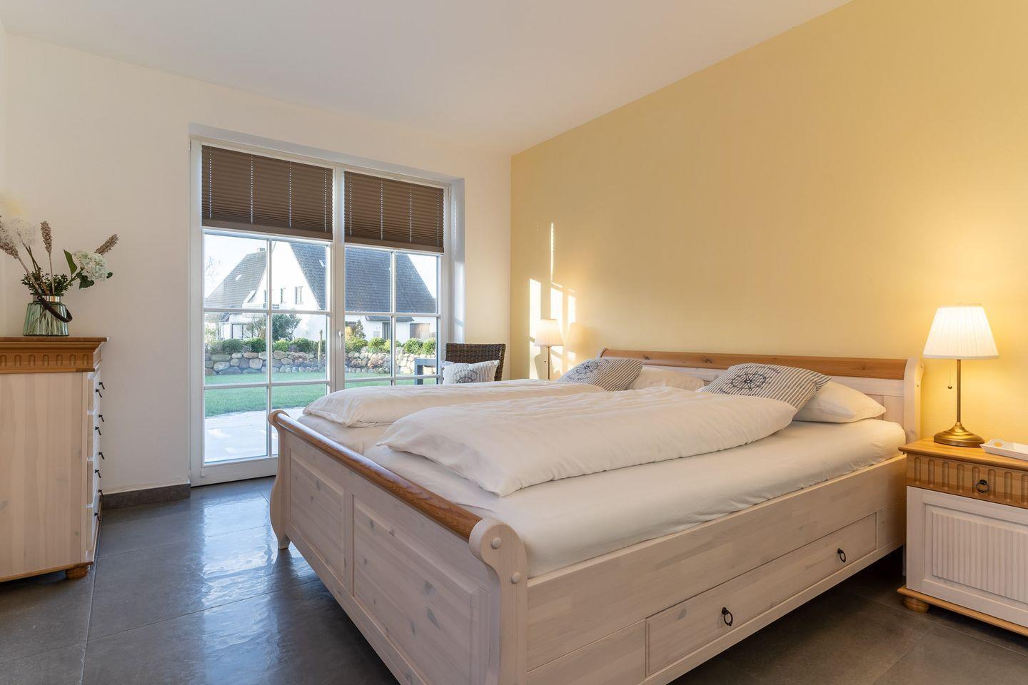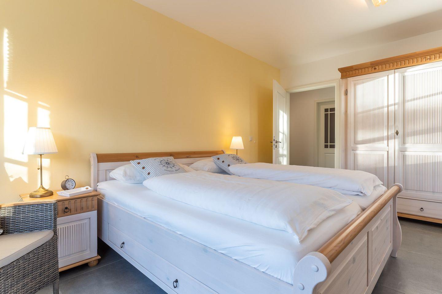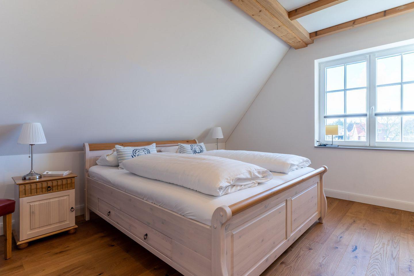 Über eine Granittreppe gelangt man in das Obergeschoss. Die beiden Schlafzimmer, jeweils mit einem Doppelbett bieten ruhevolle Erholung.