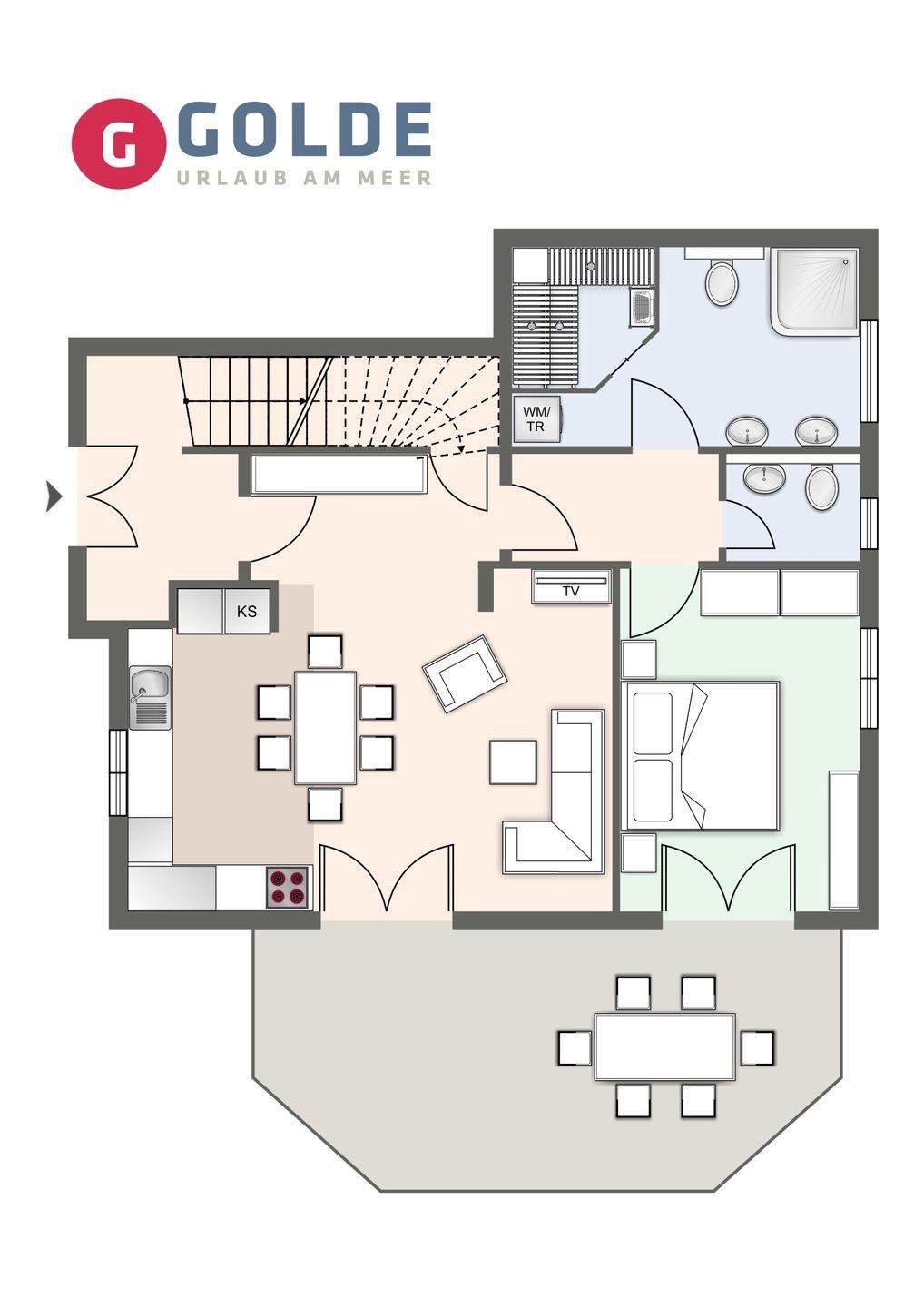 Es handelt sich um einen ruhig gelegenen Neubau am Ende einer Sackgasse und nur 200m von Deich und 1100m vom Strandübergang entfernt.