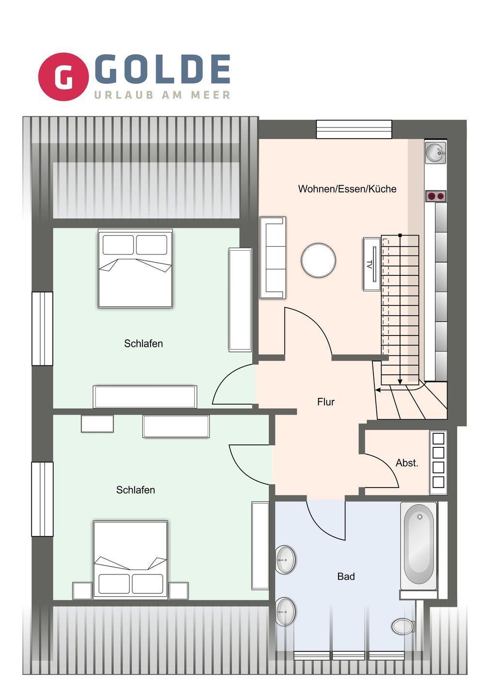 Es bietet Platz für 1-6 Personen über 2 Etagen.