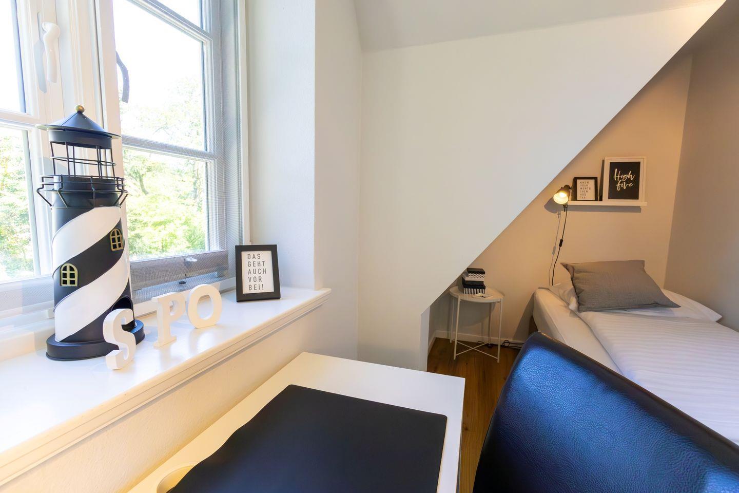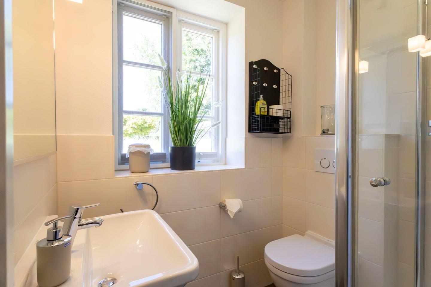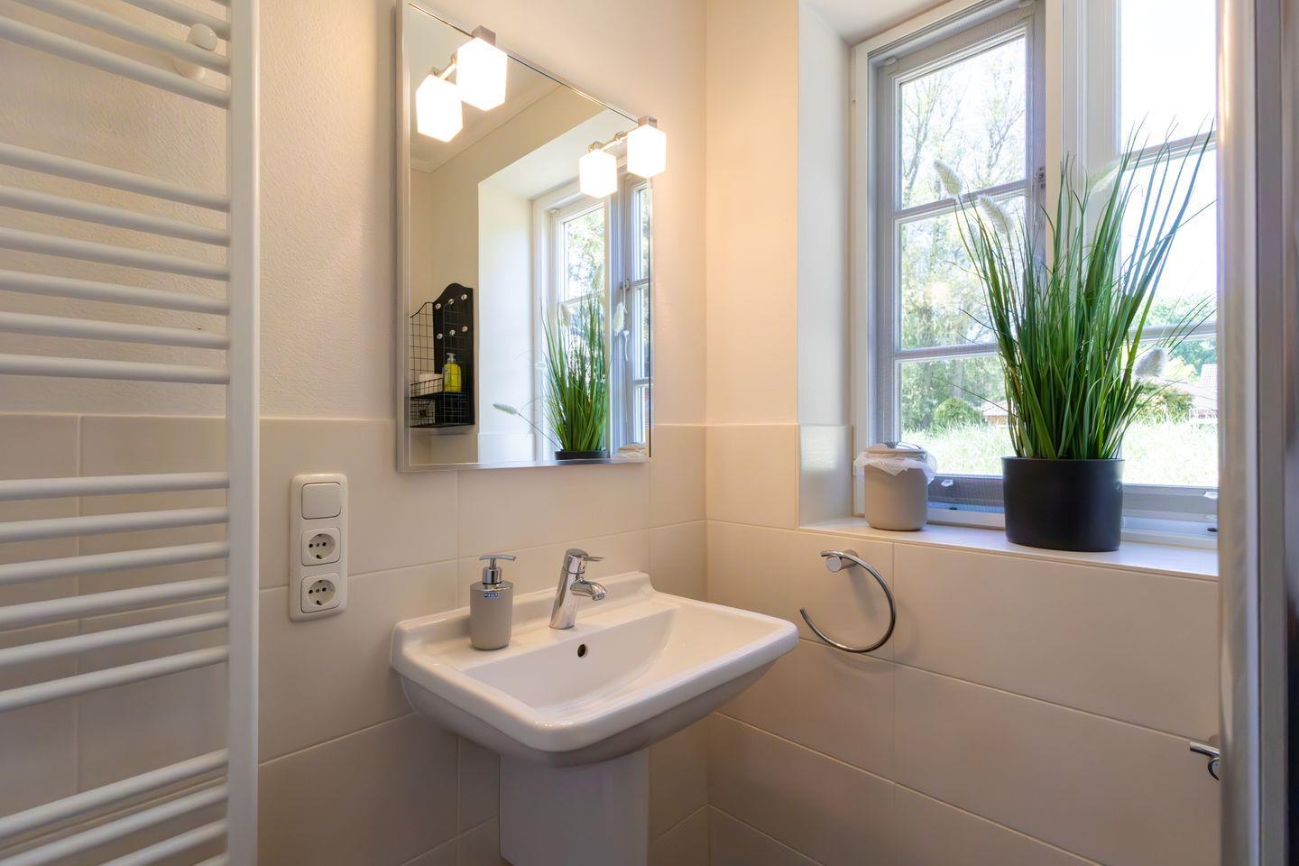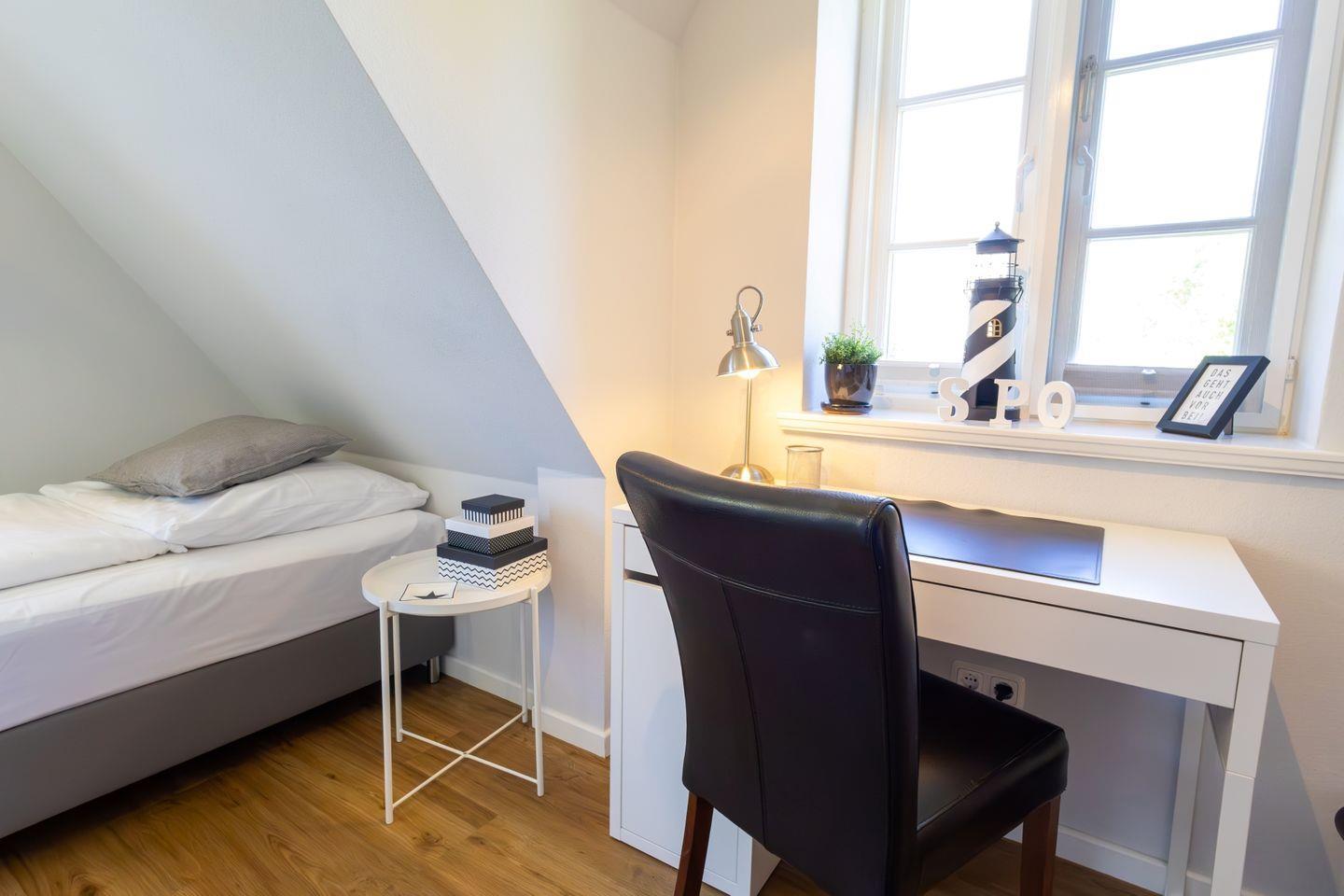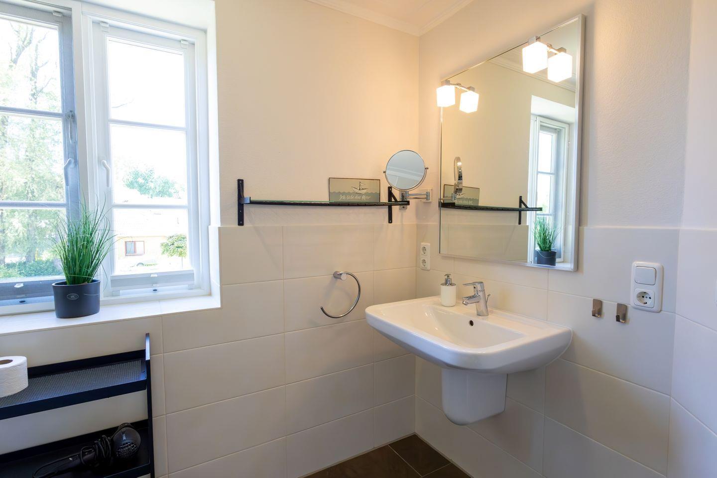 Im Erd- und Obergeschoss sorgt eine Fußbodenheizung für ein angenehmes Raumklima. Die Terrasse ist in der Saison mit Gartenmöbeln und einem Strandkorb ausgestattet.