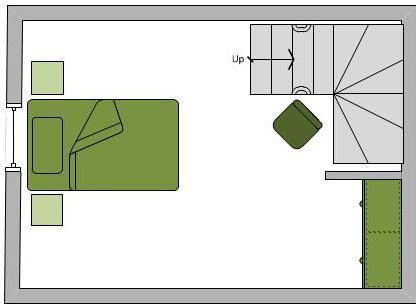 Dachgeschoss: ein Schlafzimmer mit einem Doppelbett (160 x 200 cm - durchgehende Matratze)