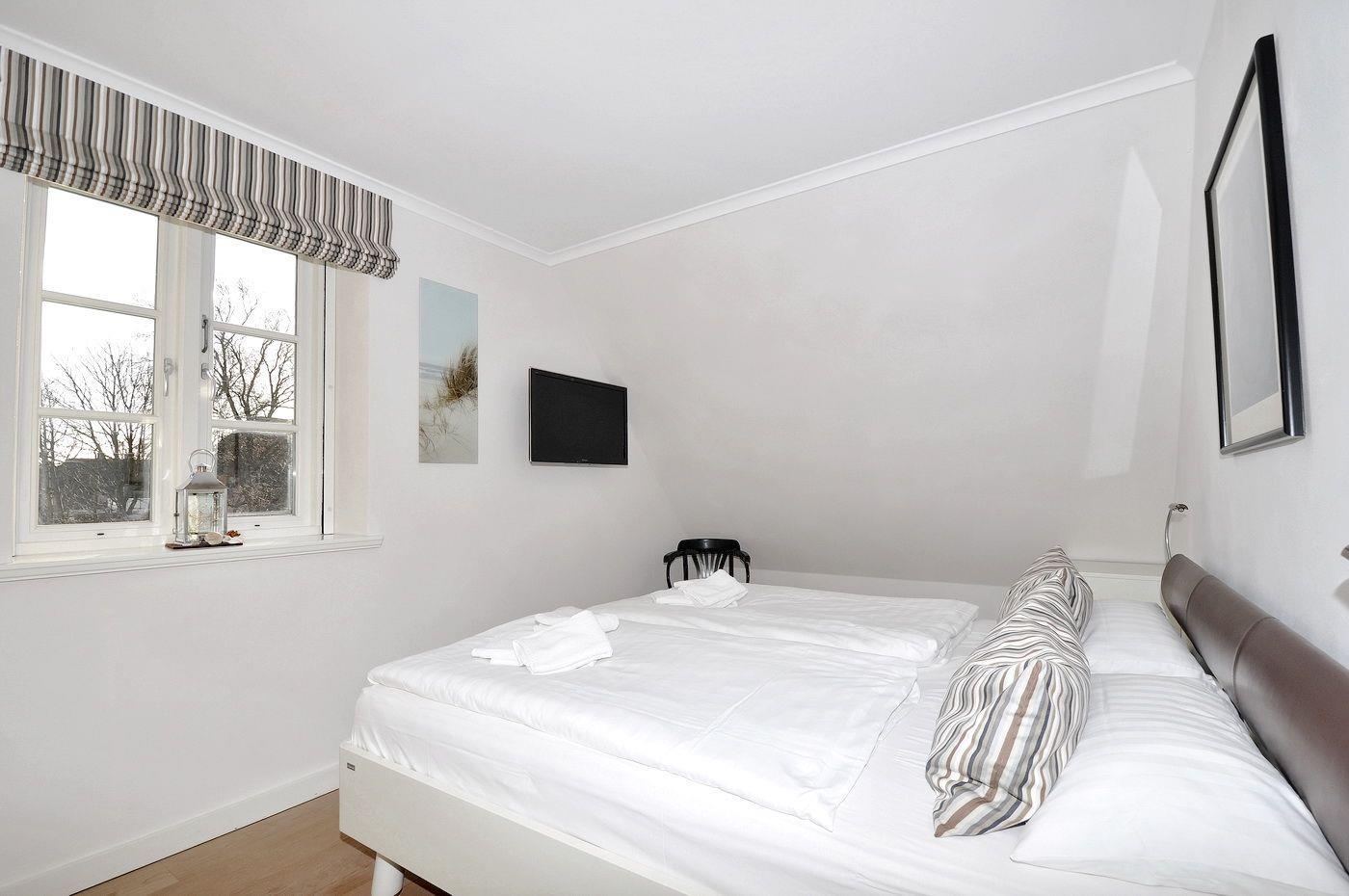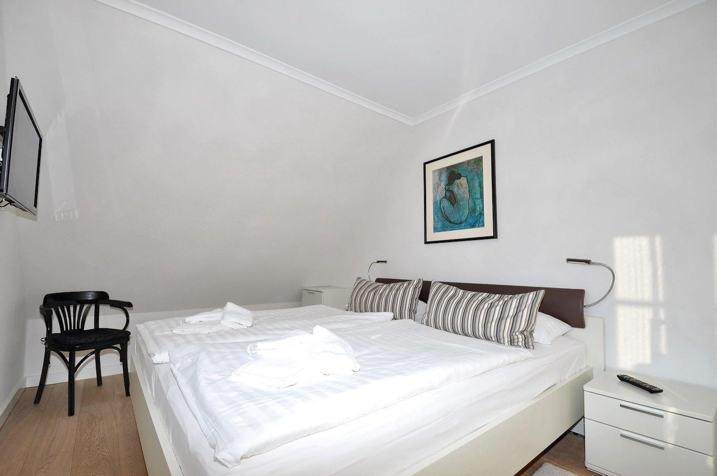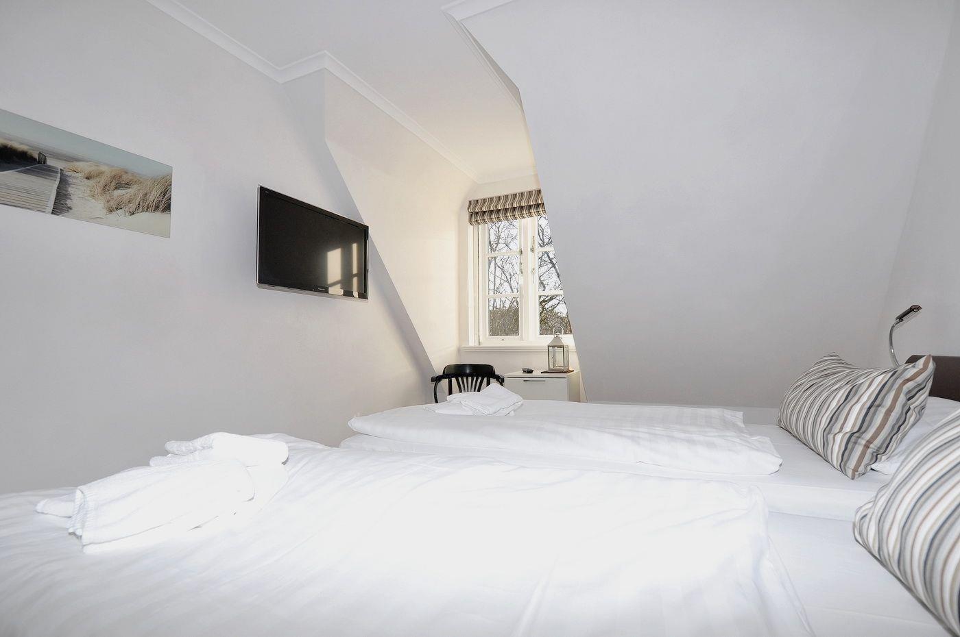 Dachgeschoss: ein Schlafzimmer mit 2 Einzelbetten (je 90 x 200 cm), Kleiderschrank und 2 Sesseln