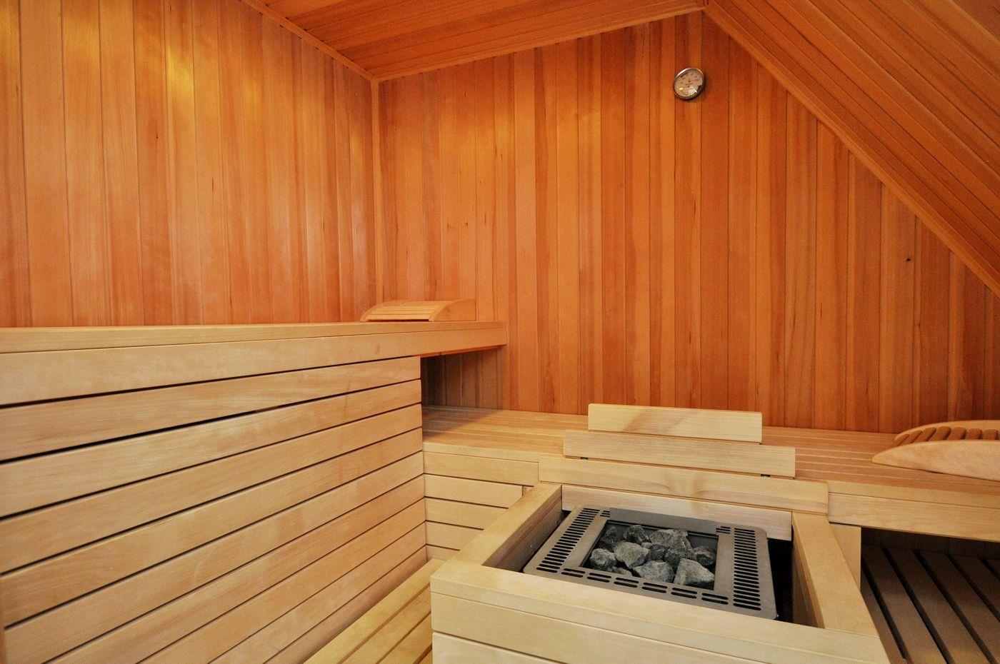 Obergeschoss: ein Schlafzimmer mit Boxspringbett (200 x 200 cm), ein Schlafzimmer mit 2 Einzelbetten (je 90 x 200 cm), ein Duschbad / WC mit Sauna
