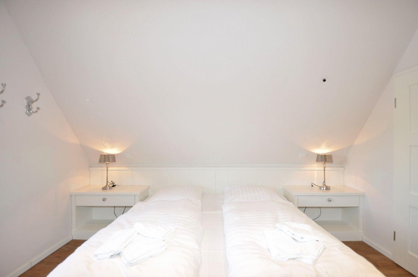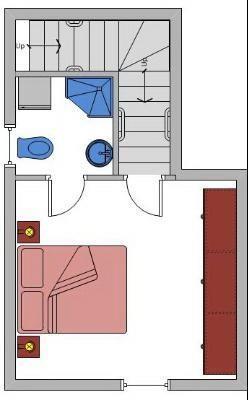 Dachgeschoss: ein Schlafzimmer mit Doppelbett (180 x 200 cm) und angegliedertem Duschbad / WC