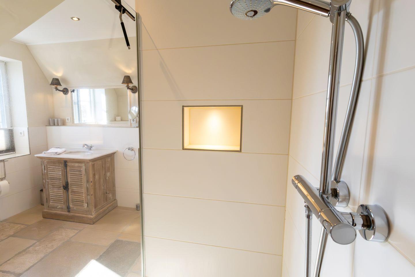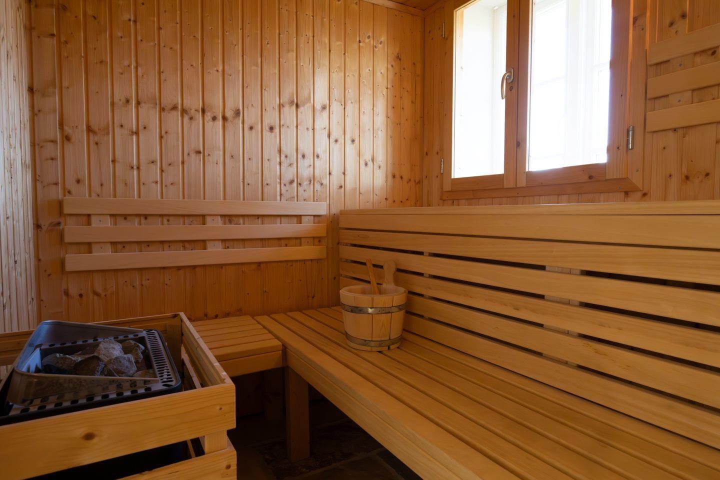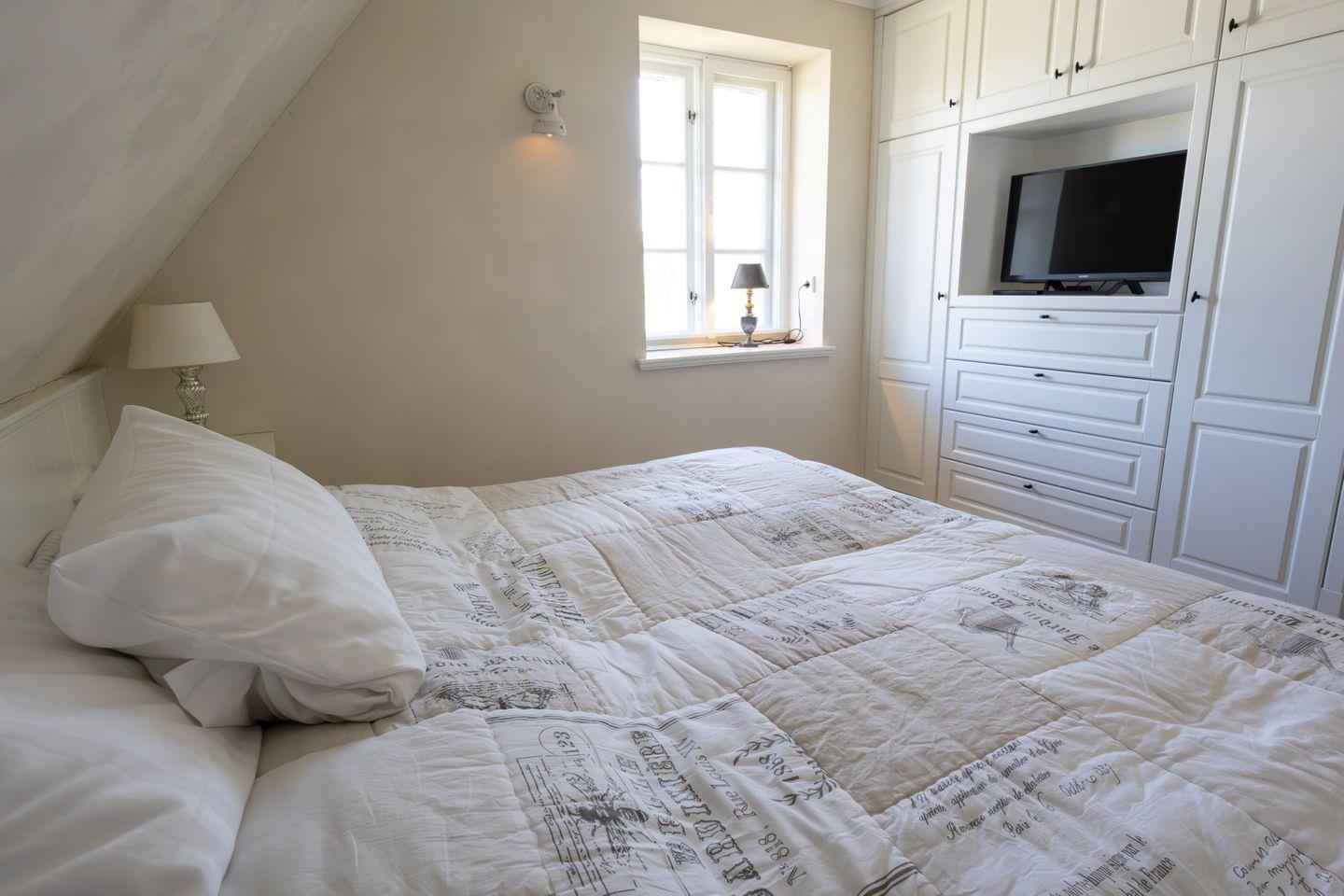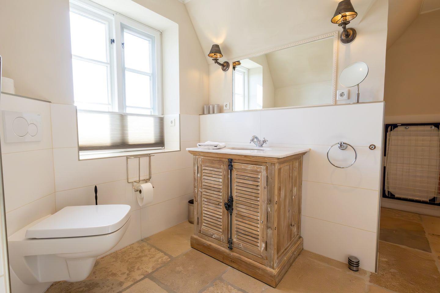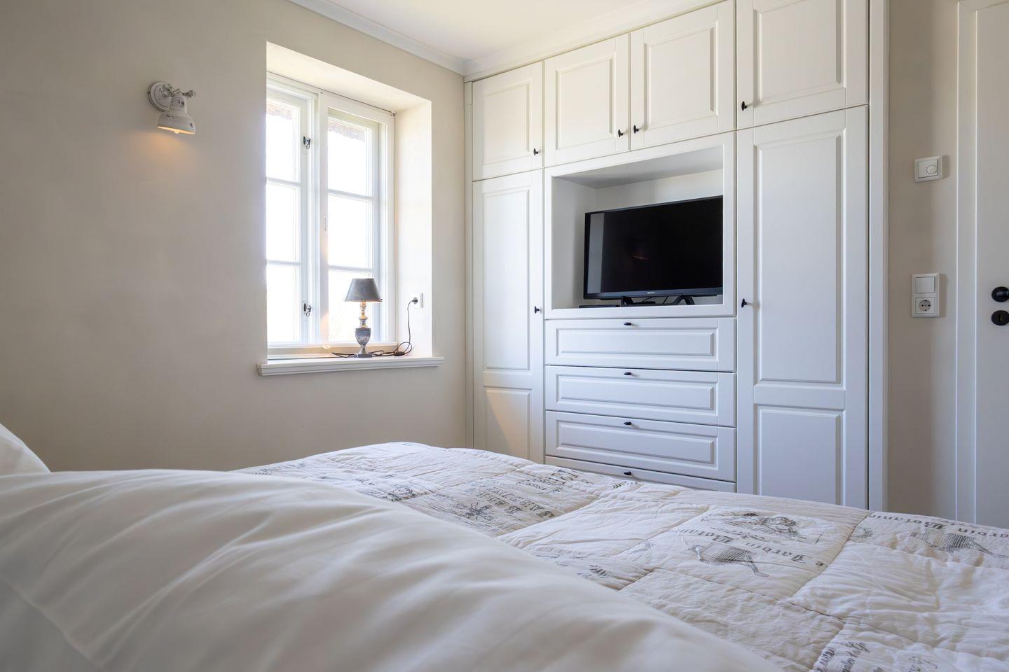 Obergeschoss: 2 Schlafzimmer mit Doppelbett (1x 180 x 200 cm - Einzelmatratzen und 1x 200 x 200 cm - Einzelmatratzen) und TV, ein Duschbad / WC mit Handtuchwärmer und Sauna