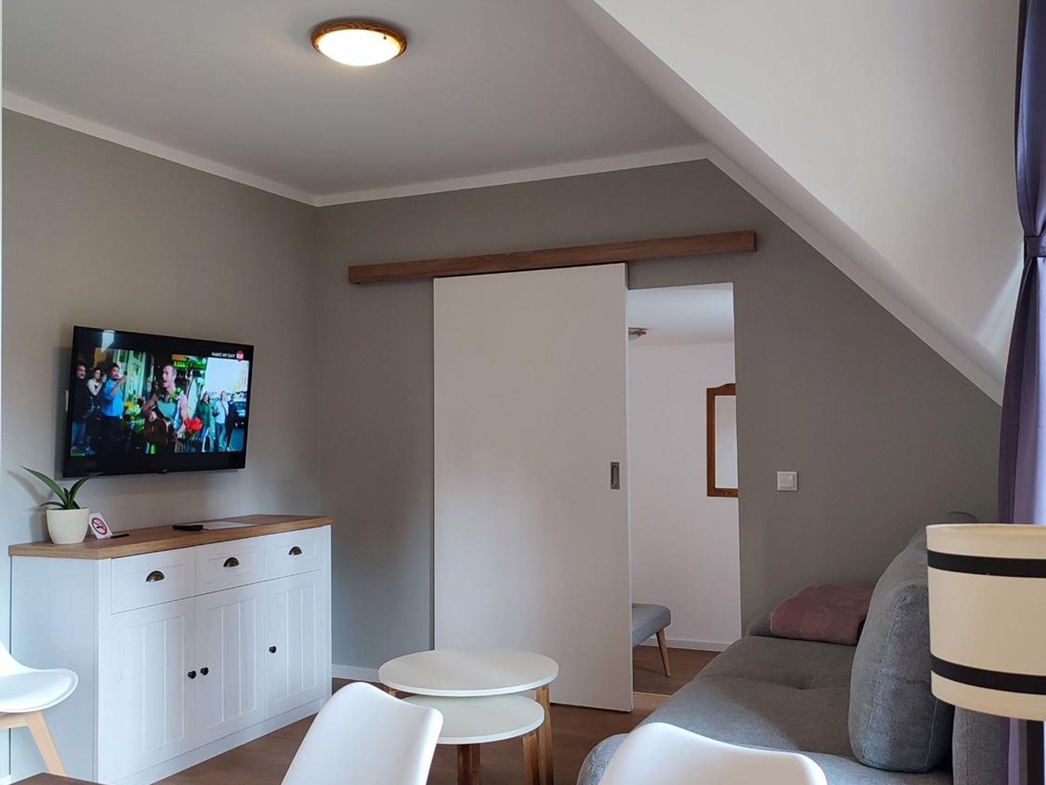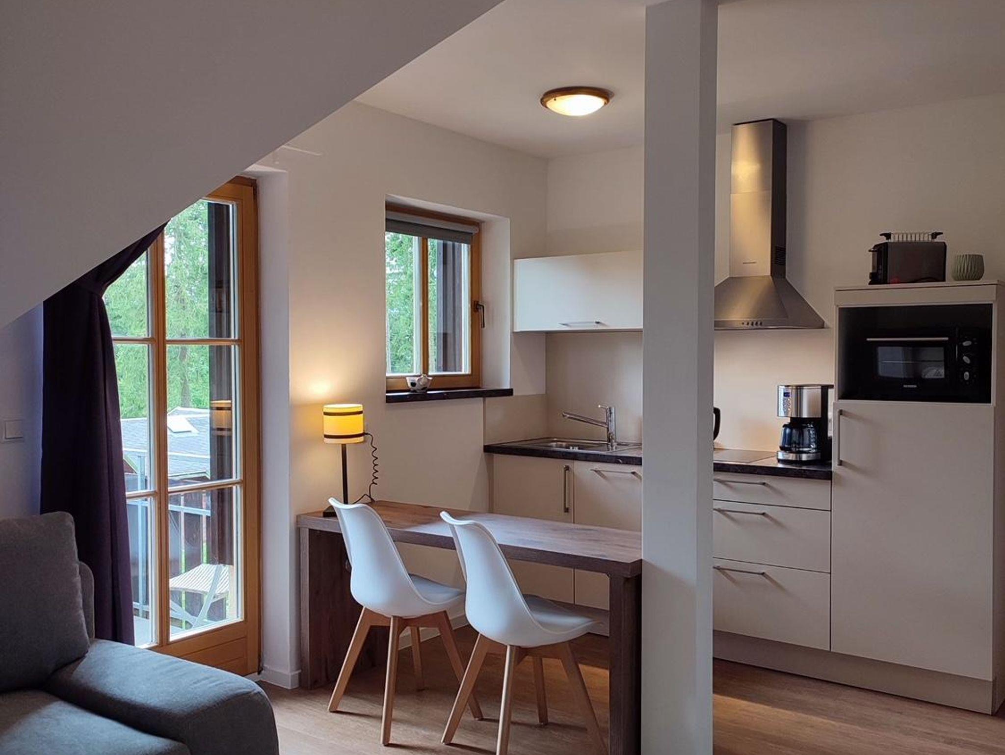Willkommen in Frida, einem charmanten Zwei-Raum-Apartment im Dachgeschoss mit ca. 39 qm für 2 bis 3 Personen. Der kleine Balkon nach Südost lädt zum Verweilen ein. Das geschmackvoll eingerichtete Wohnzimmer mit ausziehbarem Schlafsofa, TV/WLAN und Esstisch schafft eine behagliche Atmosphäre. Die praktische Küchenzeile, das Schlafzimmer mit Doppelbett und das moderne Badezimmer mit Dusche machen Ihren Aufenthalt unvergesslich. Haustiere sind im Dachgeschoss nicht erlaubt