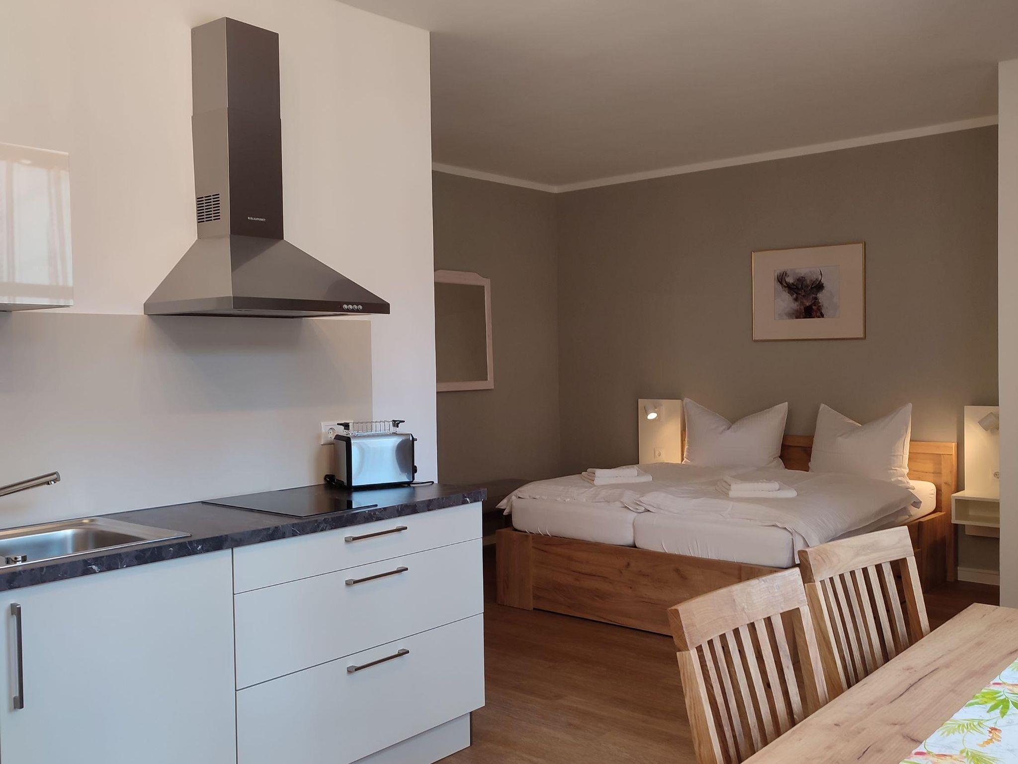 Willkommen in Ilse, einem barrierearmen Ein-Raum-Apartment im Erdgeschoss. Mit ca. 32 qm bietet es Platz für 2 Personen. Der direkte Zugang zur Terrasse nach Südost und dem Garten schafft eine einladende Atmosphäre. Genießen Sie den geschmackvollen Wohn-Schlafbereich mit Küchenzeile, großem Esstisch, TV/WLAN und Doppelbett, sowie das großzügige Badezimmer mit ebenerdiger Dusche. Haustiere sind herzlich willkommen.