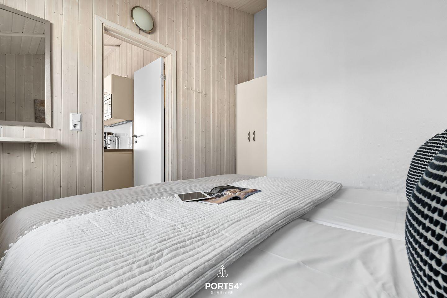 Das Schlafzimmer bietet mit zwei zusammengeschobene Einzelbetten (zusammen 180x200cm) einen behaglichen Rückzugsort für zwei Erwachsene. Natürliche Materialien und dezente Farben sorgen für ein entspannendes Ambiente. Für zusätzliche Gäste steht im Wohnbereich eine ausziehbare Schlafcouch (140 x 190 cm) bereit, die zwei Personen – ideal für Kinder oder Freunde – bequem Platz bietet. *** Bettwäsche und Handtücher können optional hinzu gebucht werden***