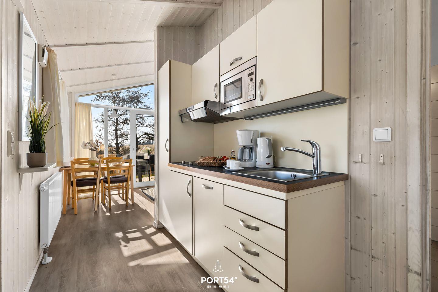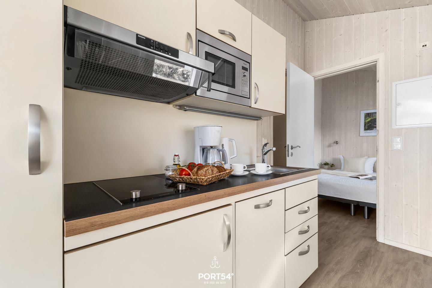 Die angrenzende, kompakte Küche ist bestens ausgestattet und bietet alles, was Sie brauchen, um gemeinsam zu kochen und kulinarische Genüsse zu zaubern. Der kleine, gemütliche Essbereich lädt zu genussvollen Mahlzeiten und langen Gesprächen ein – ein perfekter Ort, um den Tag Revue passieren zu lassen. Die Küche ist ausgestattet mit 2-Platten-Cerankochfeld, Kühlschrank mit Gefrierfach, Mikrowelle und Kaffeemaschine.