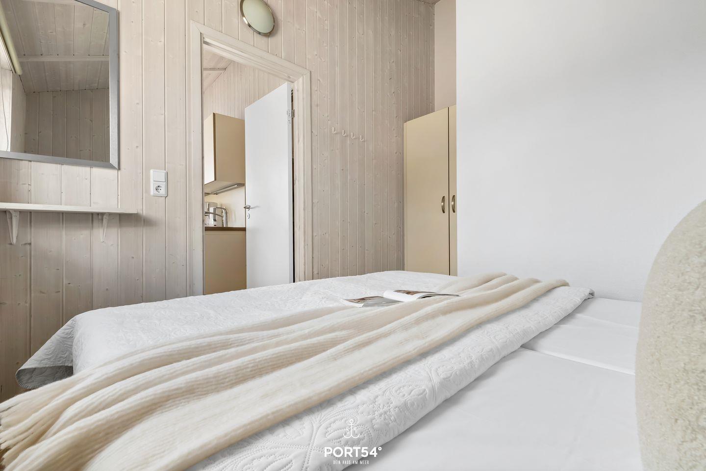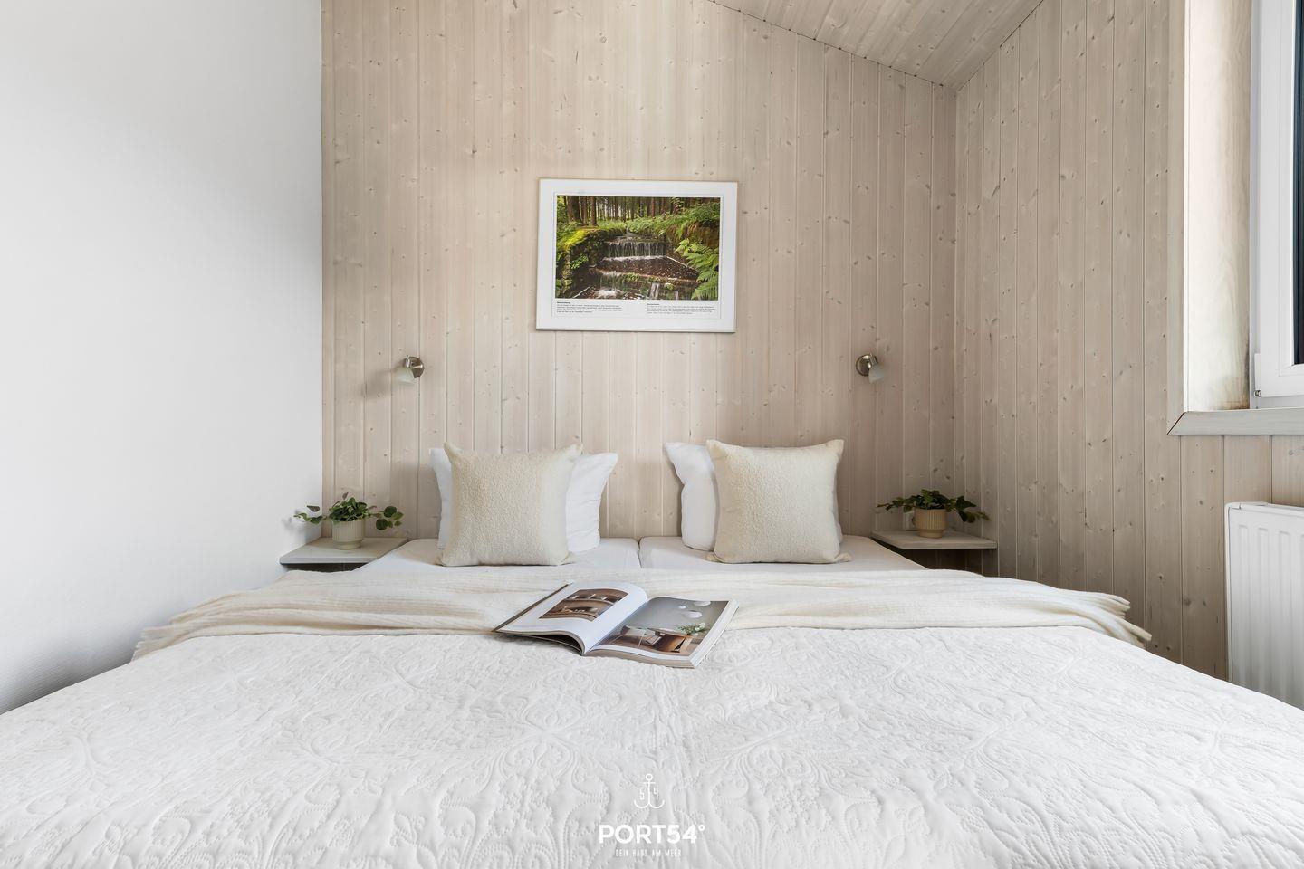 Das Schlafzimmer bietet mit zwei zusammengeschobene Einzelbetten (zusammen 180x200cm) einen behaglichen Rückzugsort für zwei Erwachsene. Natürliche Materialien und dezente Farben sorgen für ein entspannendes Ambiente. Für zusätzliche Gäste steht im Wohnbereich eine ausziehbare Schlafcouch (140 x 190 cm) bereit, die zwei Personen – ideal für Kinder oder Freunde – bequem Platz bietet. *** Bettwäsche und Handtücher können optional hinzu gebucht werden***