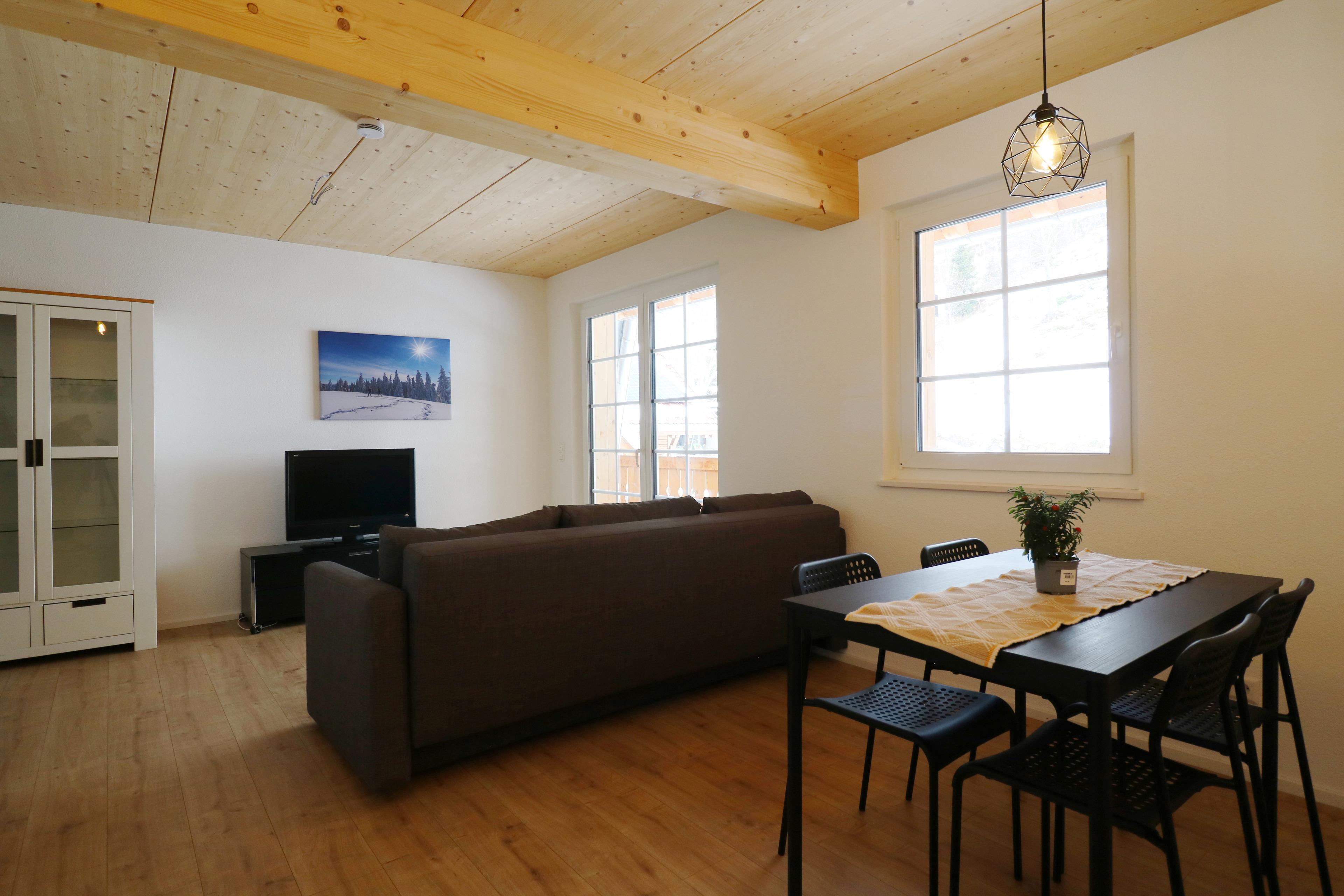 - Wohnzimmer mit Schlafsofa für 2 Personen, TV und Essplatz