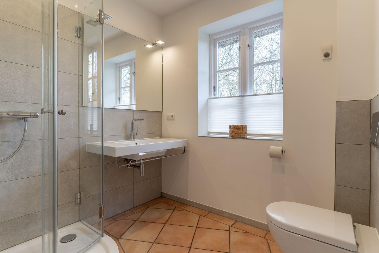 Obergeschoss: zwei gemütliche Schlafzimmer (1 x Doppelbett 180 x 200 cm, 2x Einzelbetten 90 x 200 cm), geräumiges Badezimmer mit Eckbadewanne und Handtuchtrockner.