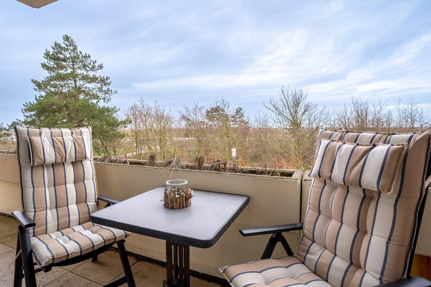 Sie genießen einen wunderschönen Ausblick von Ihrem Balkon. Gartenmöbel laden zum Entspanne bei optimaler Sonnenauslastung ein.