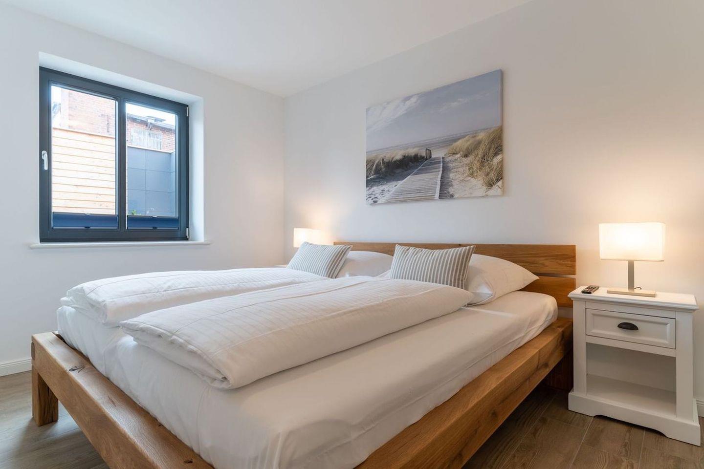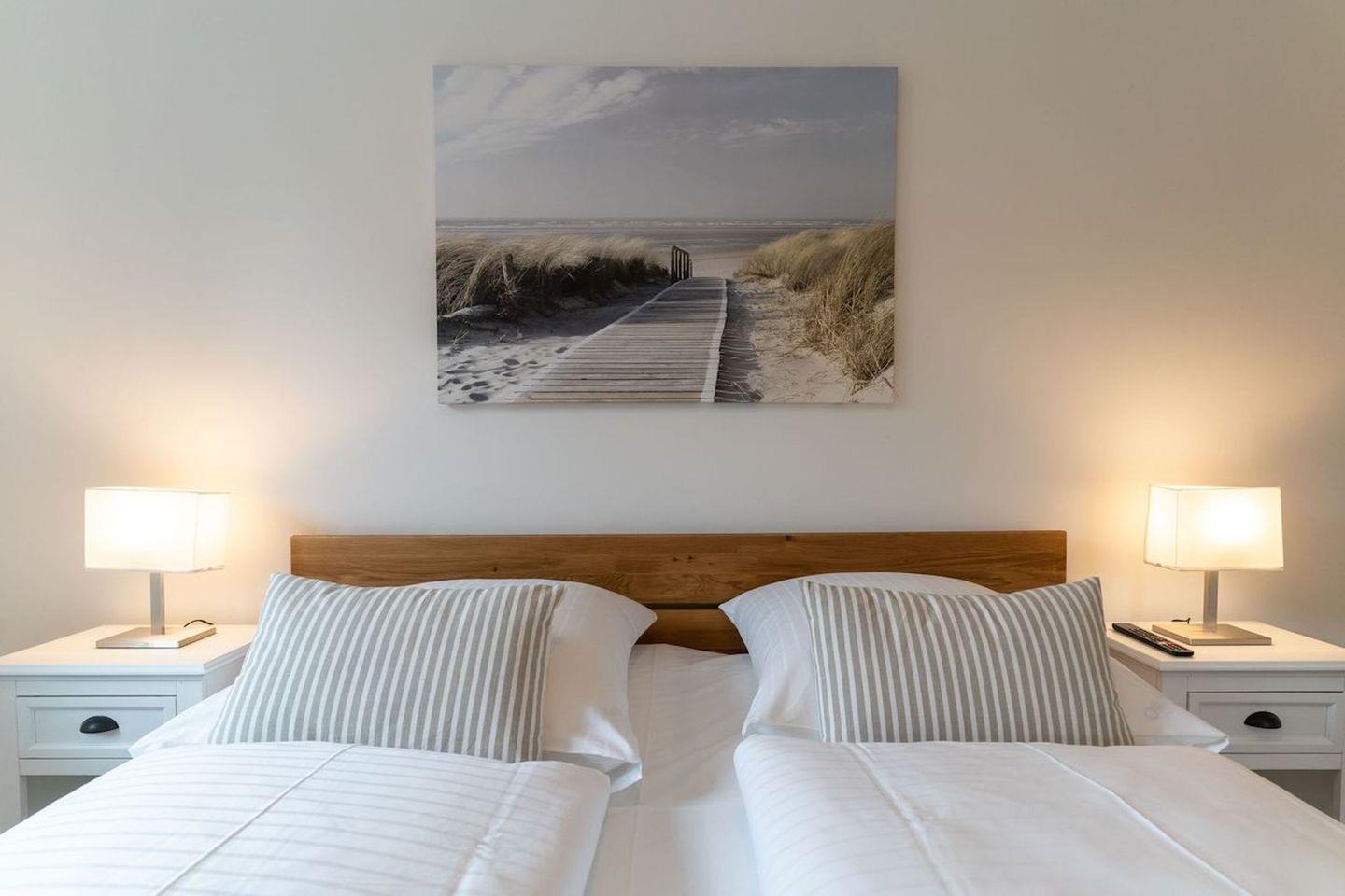 Vom Flur gelangen Sie ins Doppelschlafzimmer mit TV. Zusätzlich gibt es im Wohnzimmer ein gemütliches Schlafsofa für eine Personen. Das Duschbad bietet genügend Platz für Ihre Utensilien.