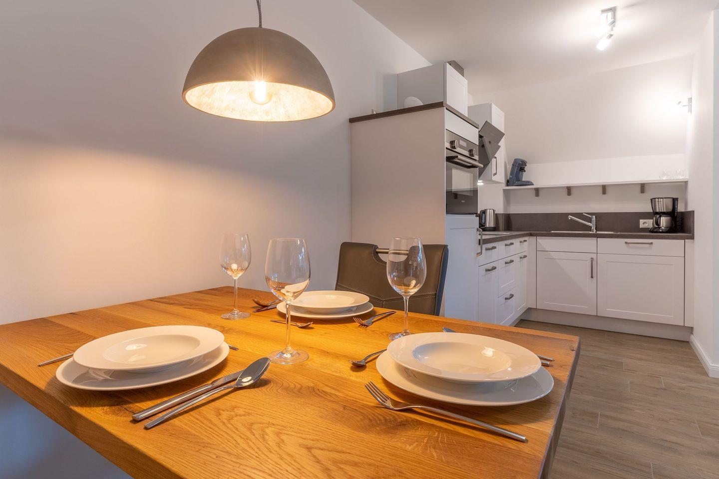 Die Wohnung befindet sich im Erdgeschoss mit einem lichtdurchfluteten Wohnraum mit TV und einer modernen Wohnküche. Die Wohnräume sind mit neuen und modernen Möbeln ausgestattet.