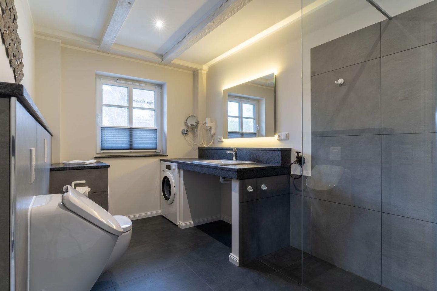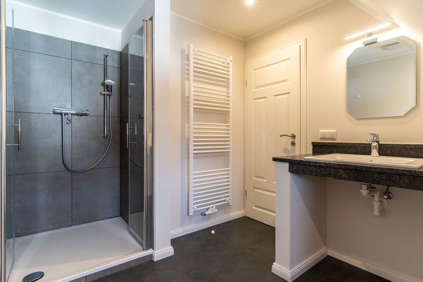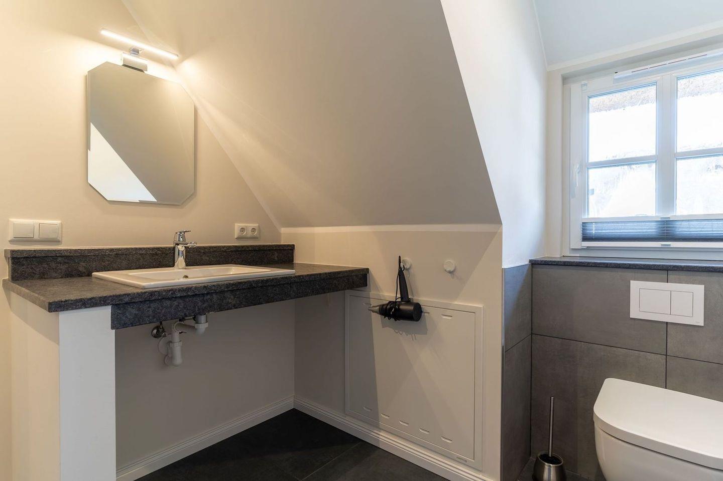 Im ersten Stock befindet sich ausserdem ein weiteres Duschbad sowie eine Sauna.