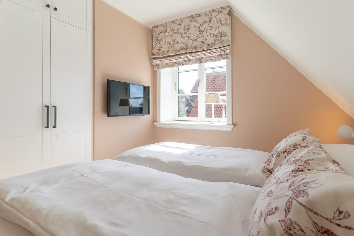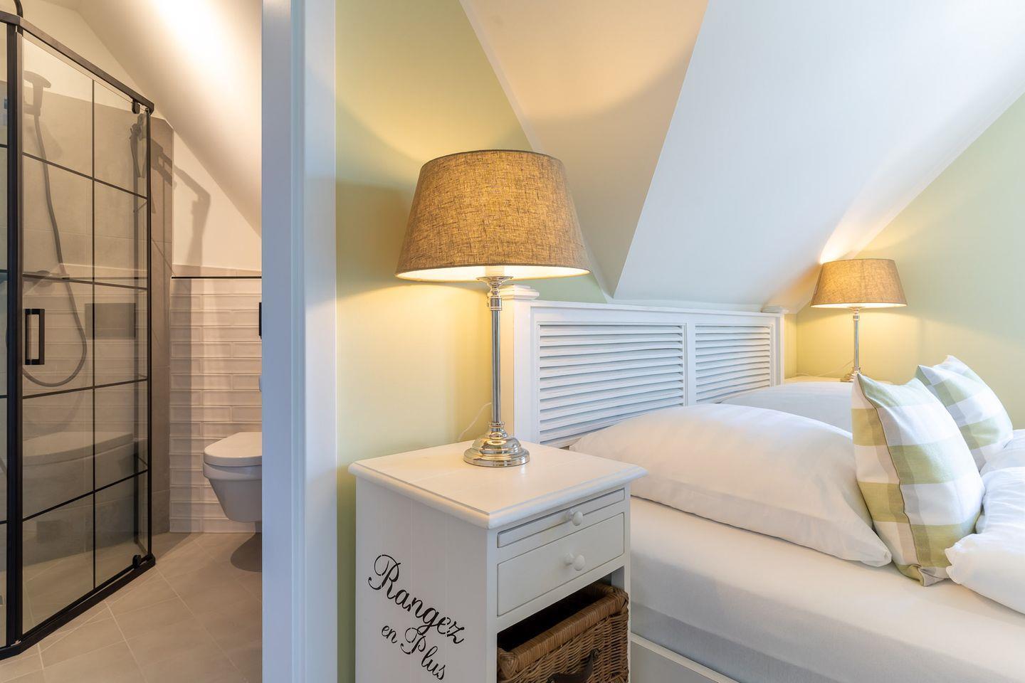 Über eine schöne Holztreppe gelangt man in das Obergeschoss, in dem sich 3 liebevoll eingerichtete Schlafzimmer sowie 2 Bäder mit einer kleinen Sauna befinden. Das Master-Schlafzimmer verfügt über ein Doppelbett, einen TV, einen großen Kleiderschrank sowie ein eigenes kleines Bad en suite. Die 2 anderen Schlafzimmer sind ebenfalls mit TV und einem Kleiderschrank ausgestattet.
