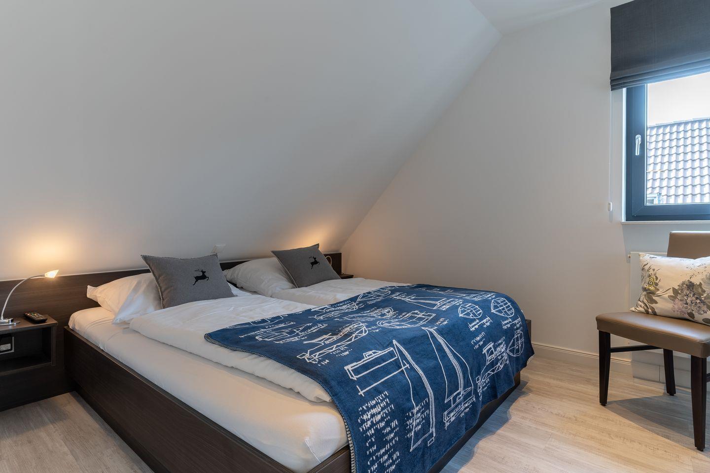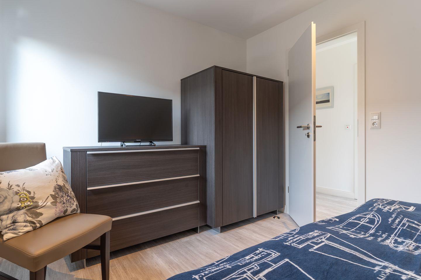 Vom Flur gelangen Sie ins Doppelschlafzimmer mit einem 160er Doppelbett mit TV.