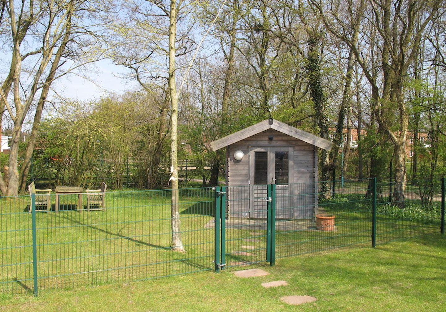 Das Grundstück mit Stellplatz, Garten und Terrasse ist wunderschön eingewachsen.