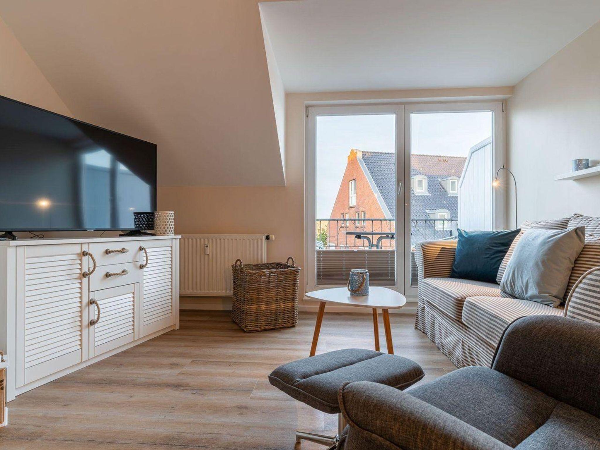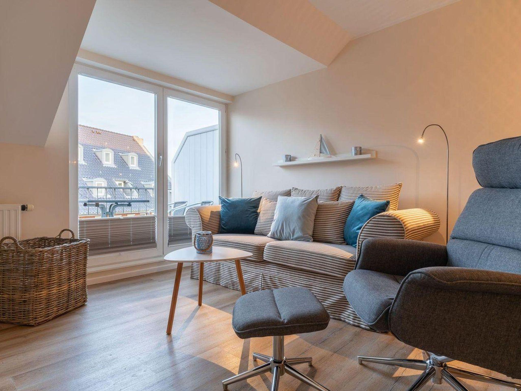 Die im Beachhouse Style renovierte Wohnung Deichblick, App. 12 , begrüßt zwei bis vier Personen im 1.OG mit Westbalkon.