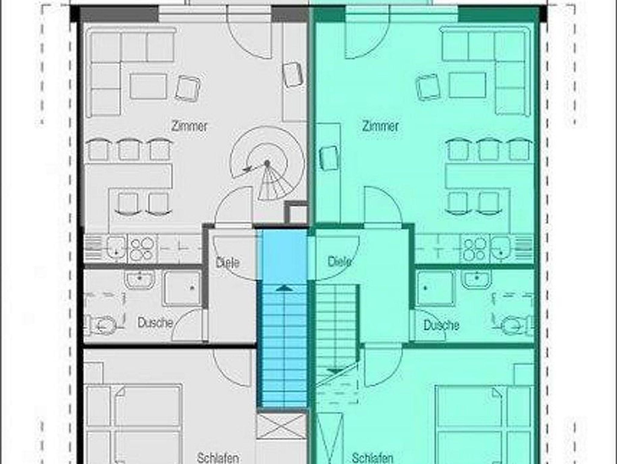 Im Dachgeschoss (über eine Wendeltreppe zu erreichen) befindet sich ein zusätzlicher Waschraum mit WC.